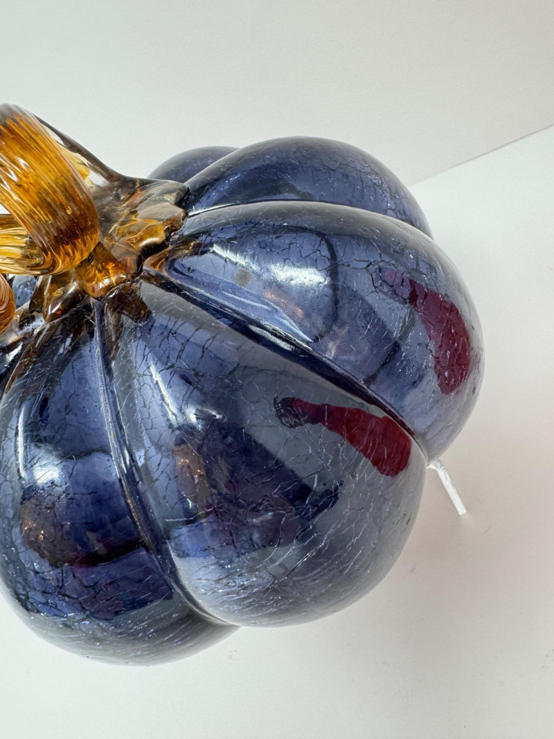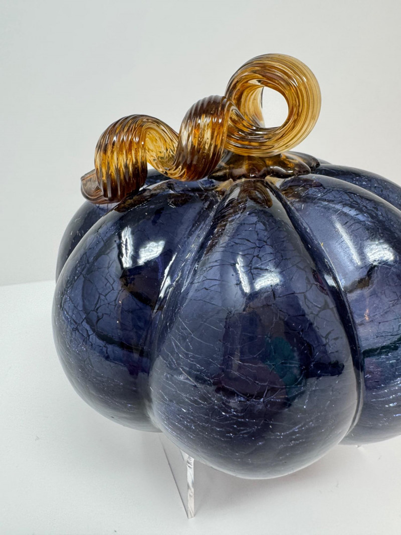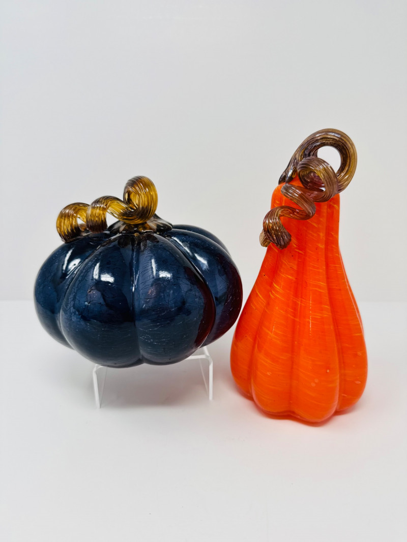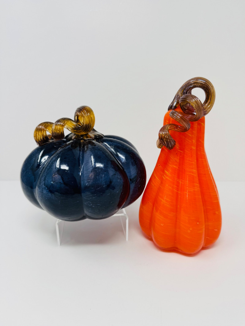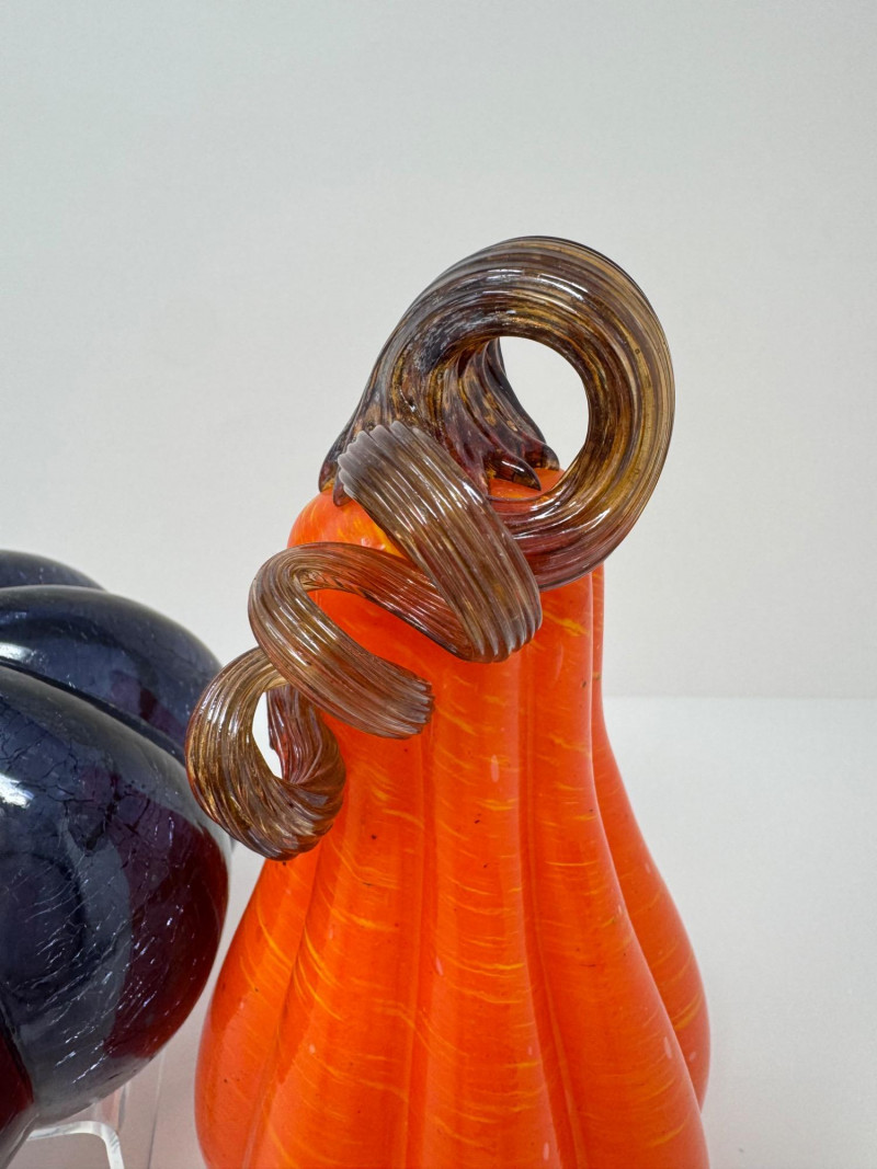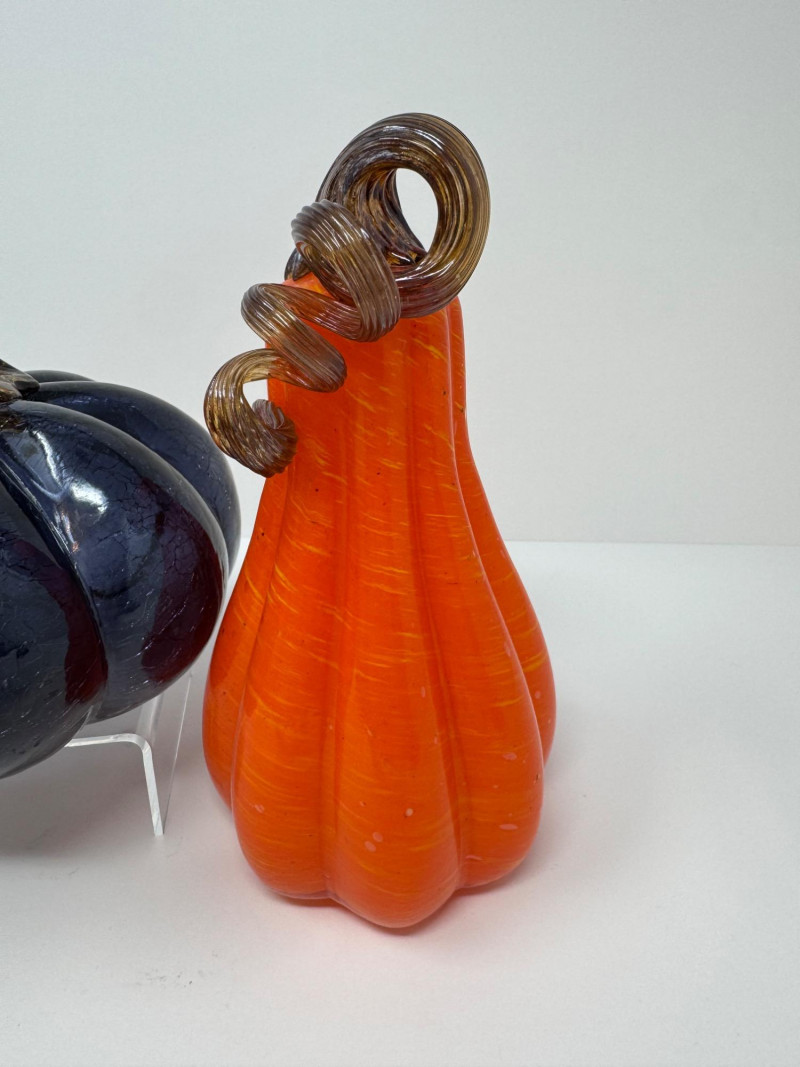 Lot # 75 - Blown Glass Pumpkins – Orange Gourd & Dark Partial-Molded, Brown Stems