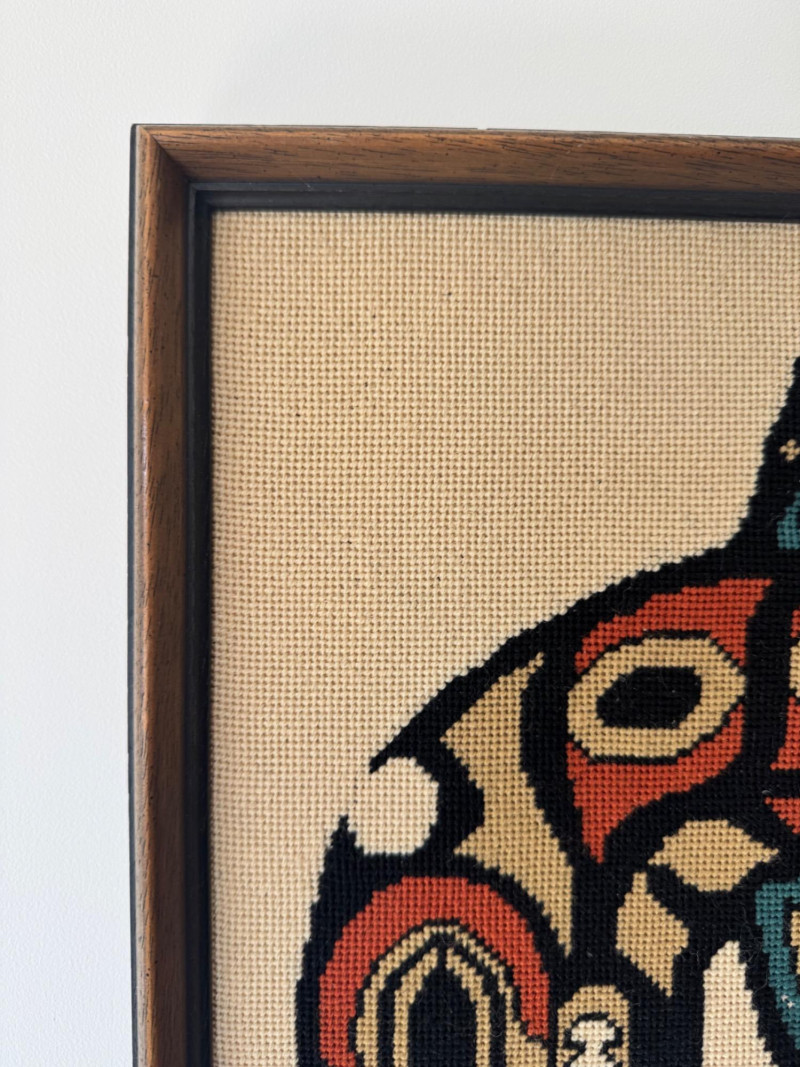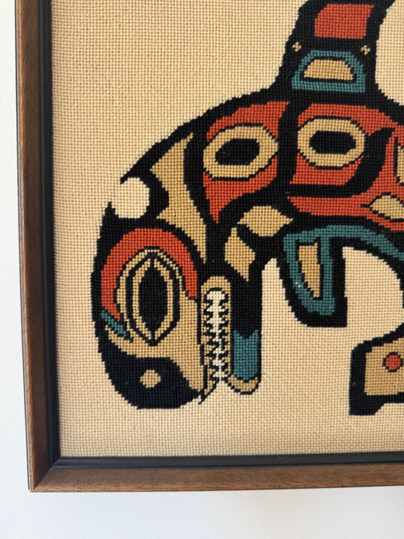 Lot # 82 - Handmade Needlepoint Orca Wall Art – NW Coast Style, 15” Framed