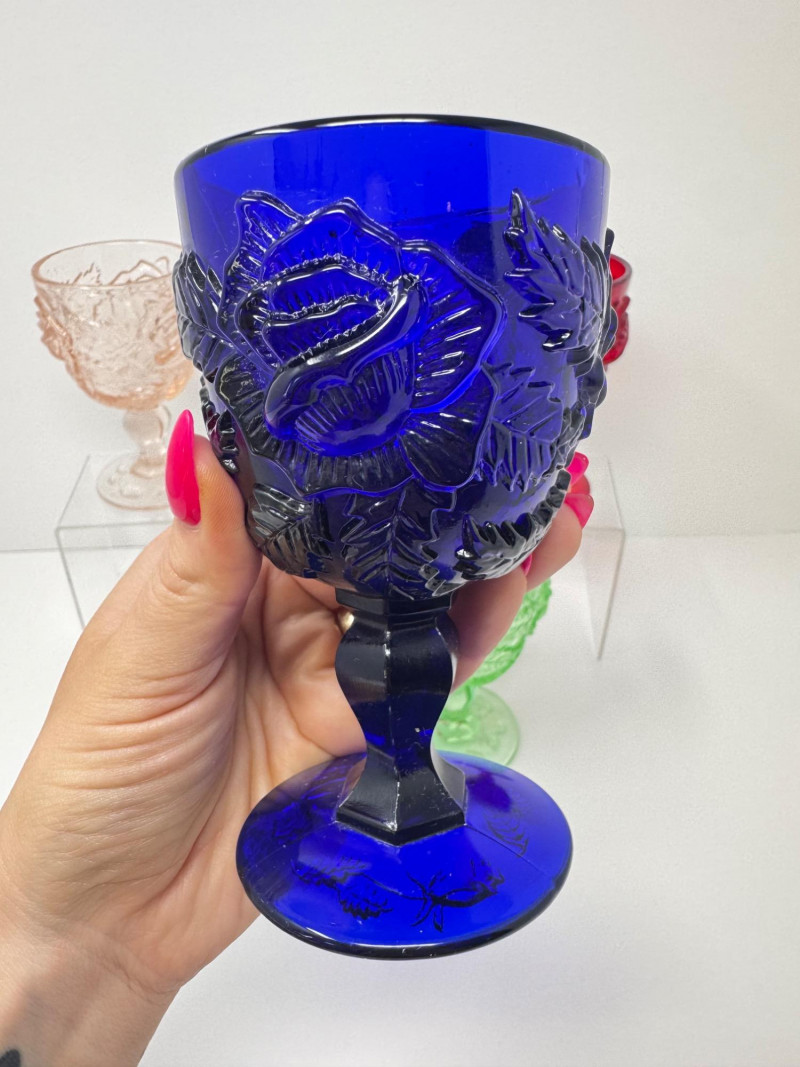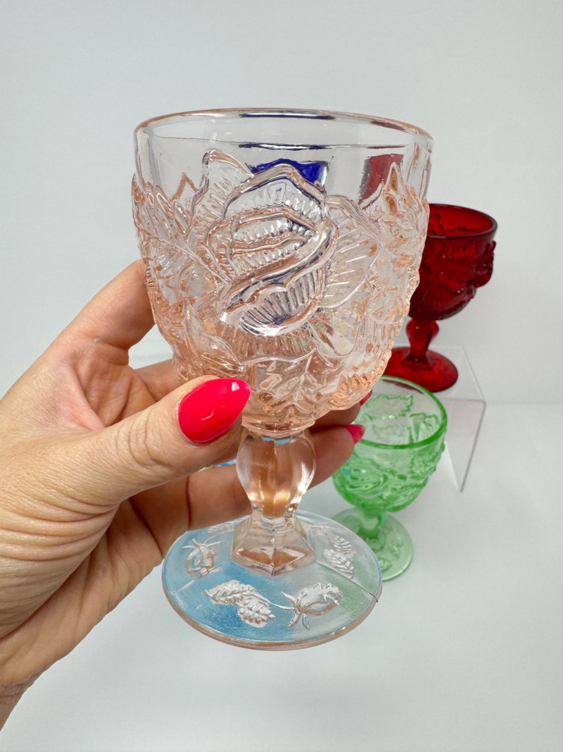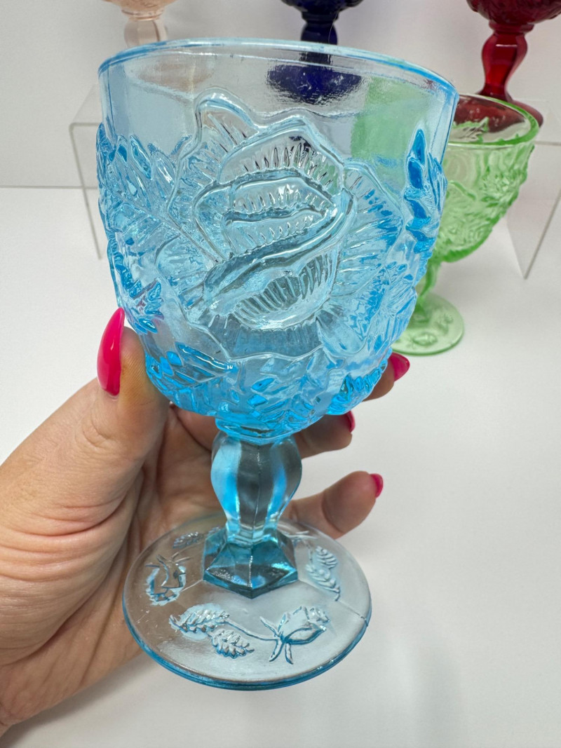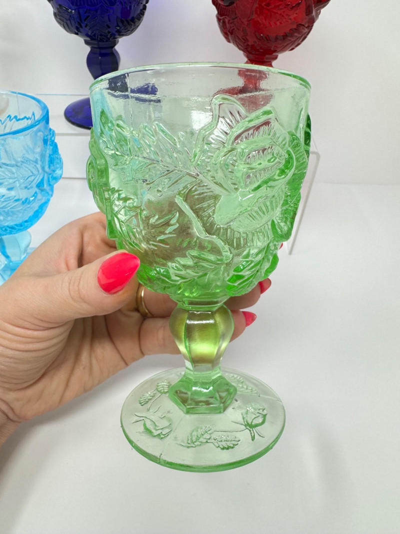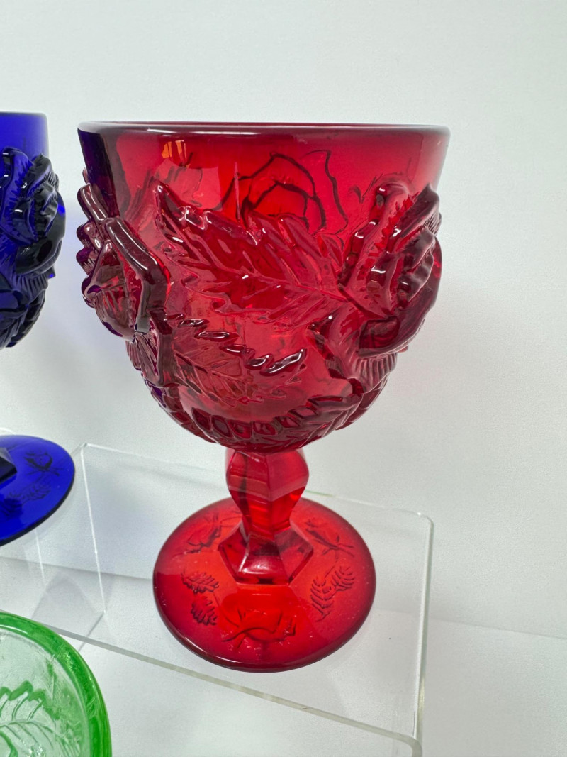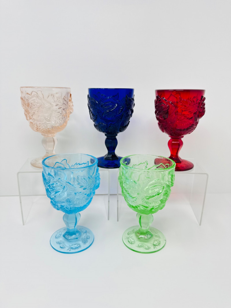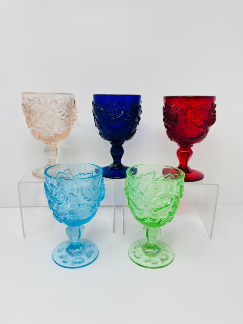 Lot # 89 - Vintage Multi-Color Pressed Glass Goblets – Fenton Madonna Inn Style