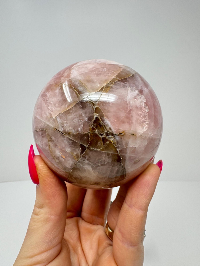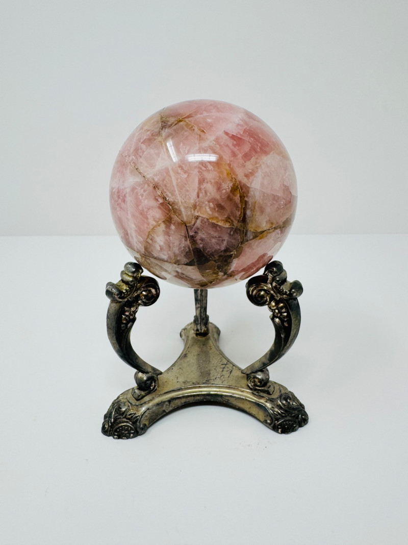 Lot # 91 - Rose Quartz Crystal Sphere on Ornate Metal Stand