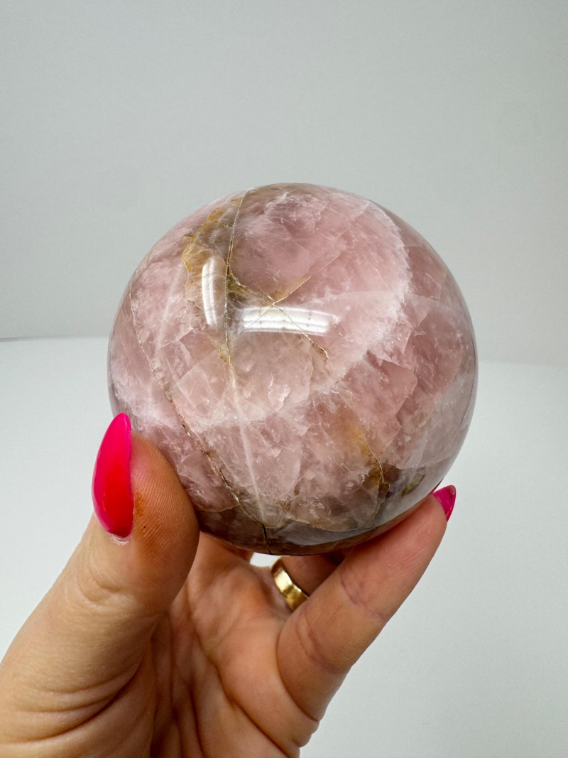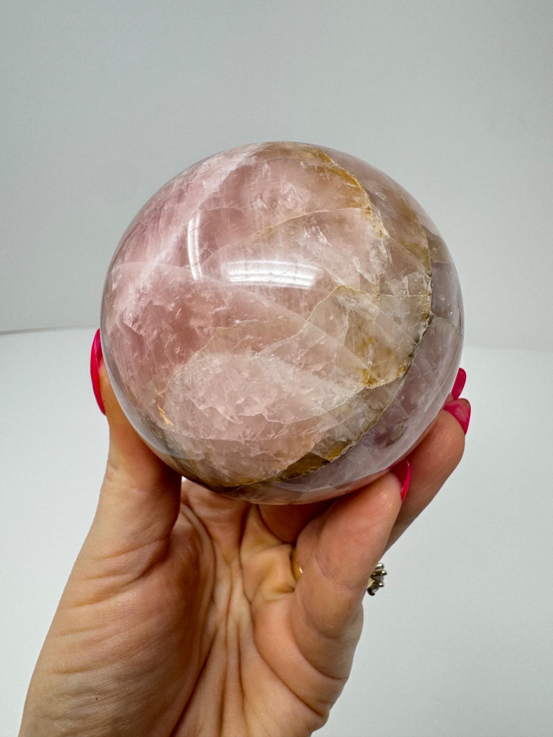 Rose Quartz Crystal Sphere on Ornate Metal Stand. Please note: These mineral specimens have not been professionally tested or identified. They are offered "as-is" based on visual assessment. Bid accordingly.
