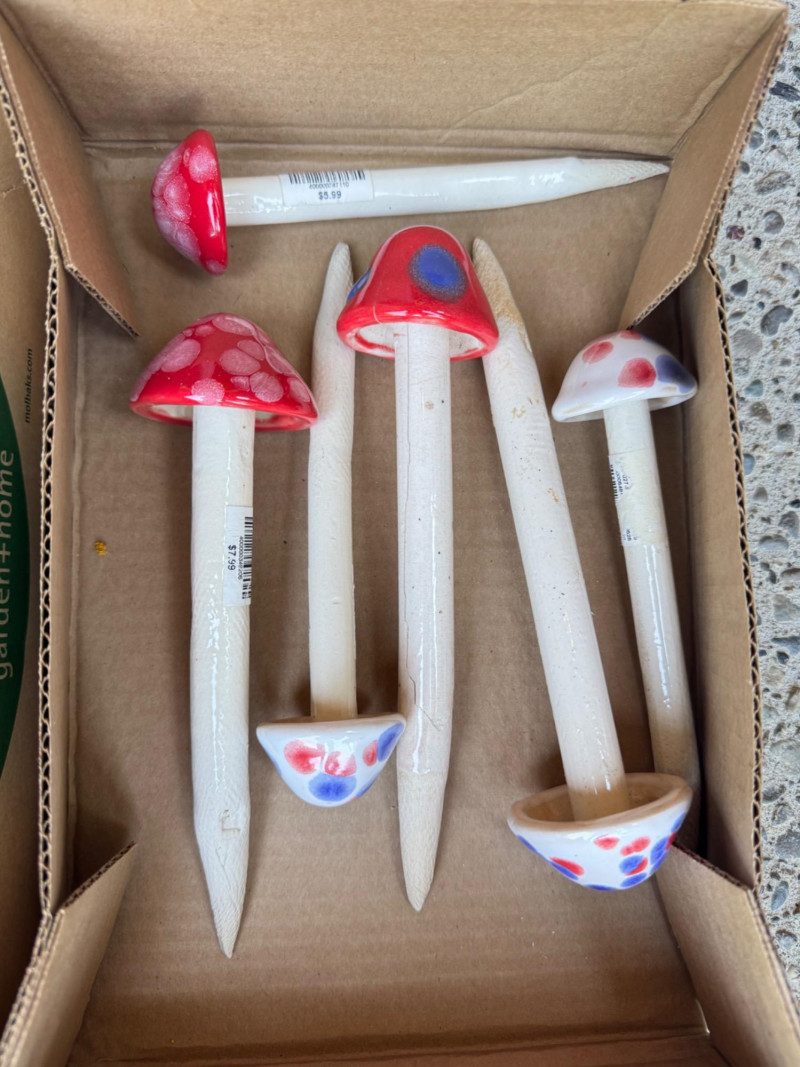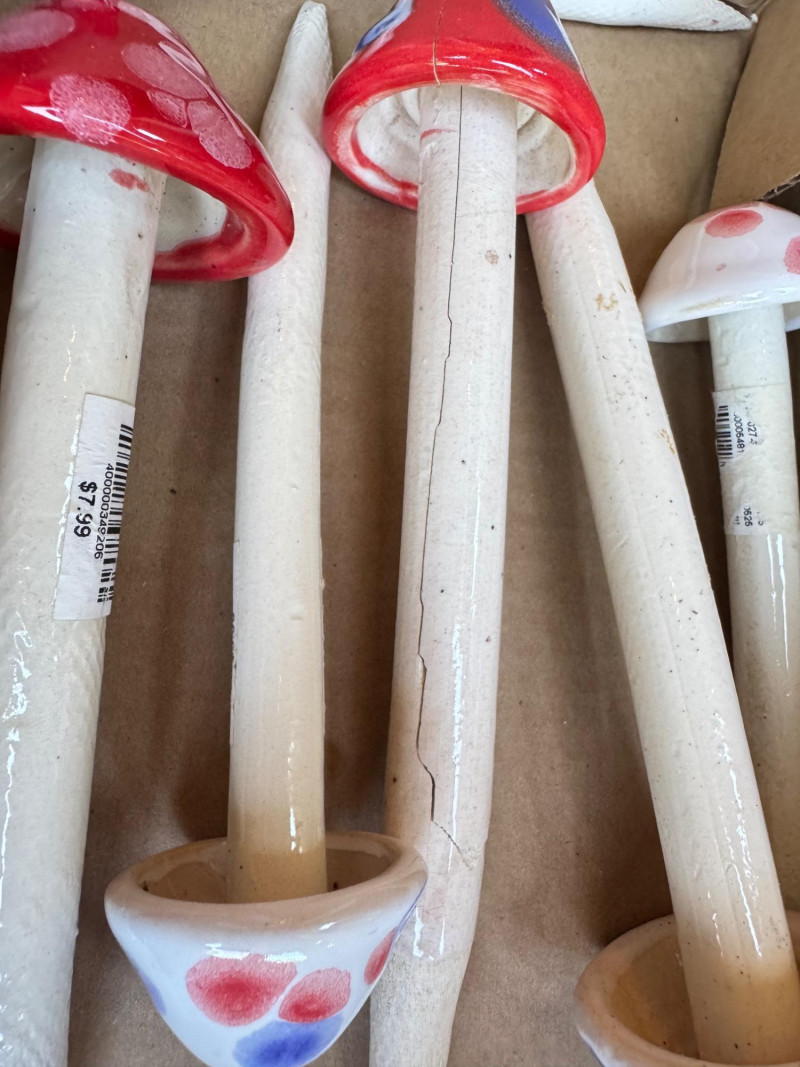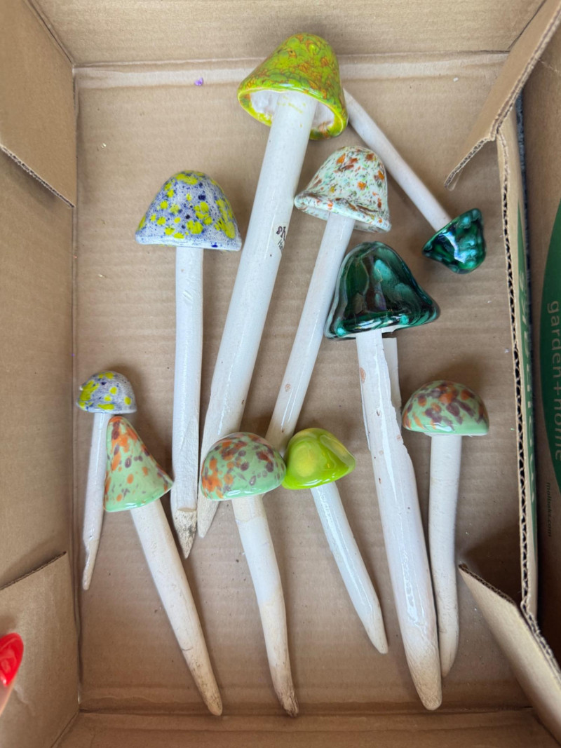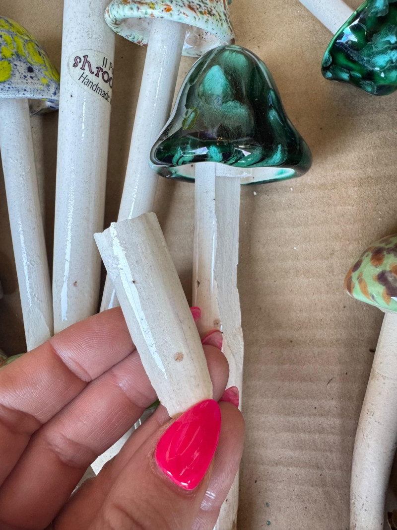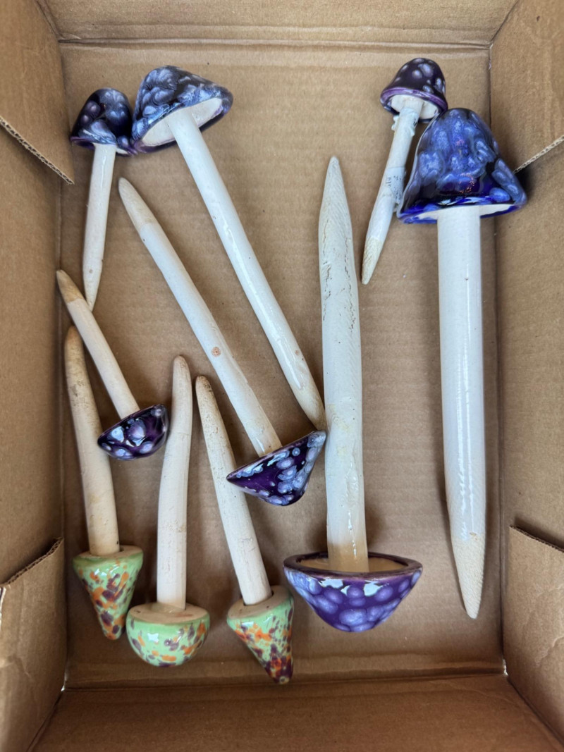 JJ Potts Handmade Ceramic Garden Shroomyz - Set 2. 3.5”- 8.5” Condition Notes: One mushroom requires repair Crack noted in another cap