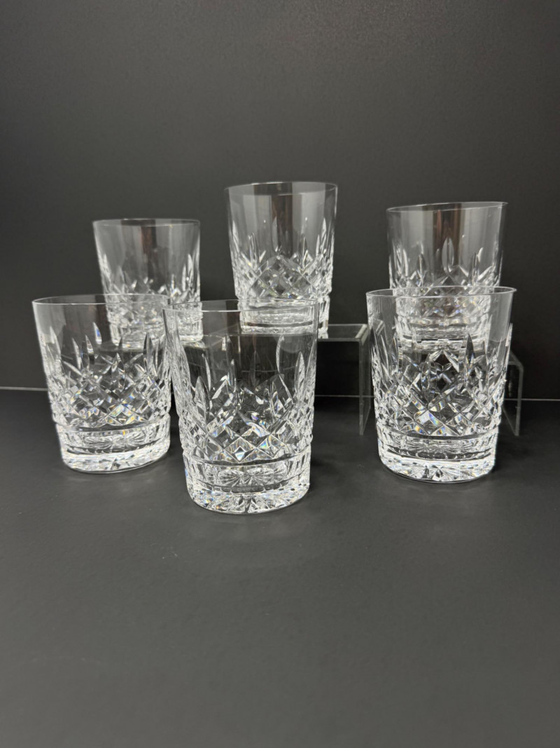 Set of 6 Waterford Crystal Lismore Double Old Fashioned Glasses.