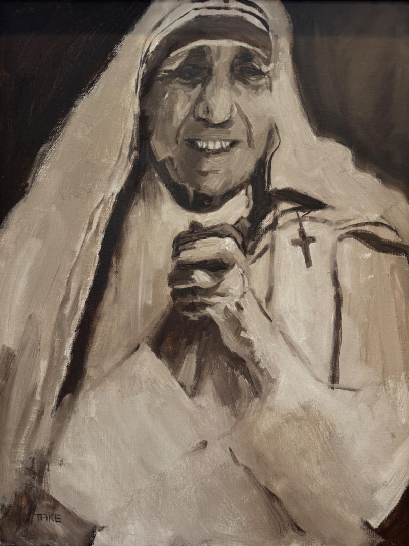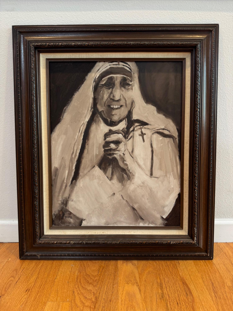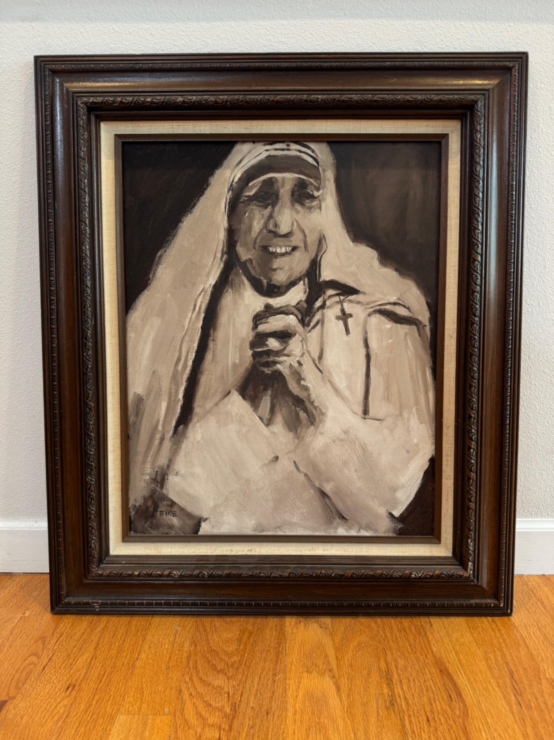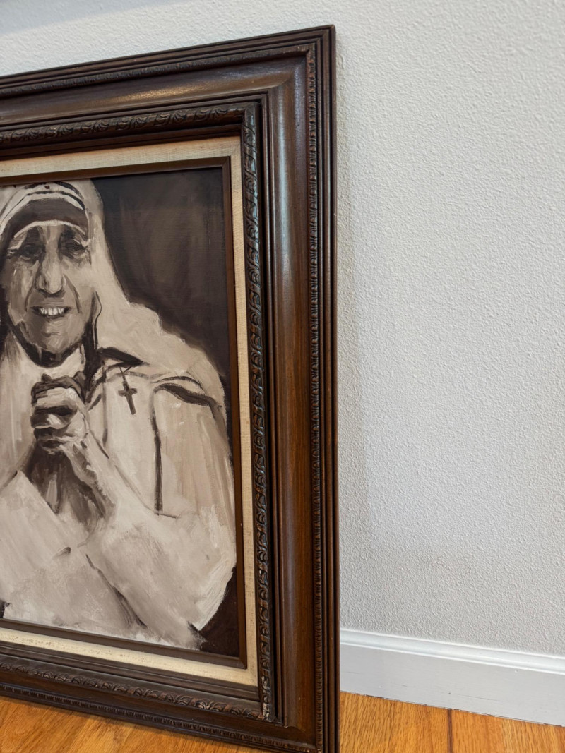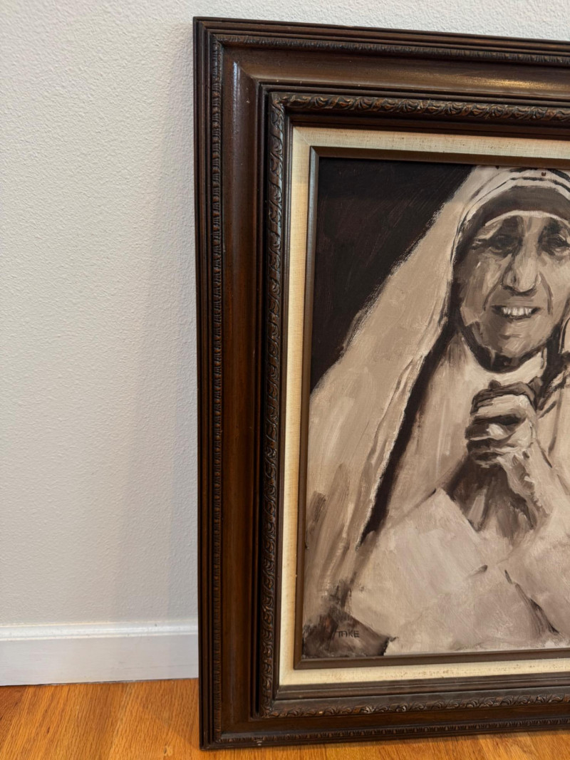 Take Hama Signed Painting – Portrait of Mother Teresa in Wooded Frame.