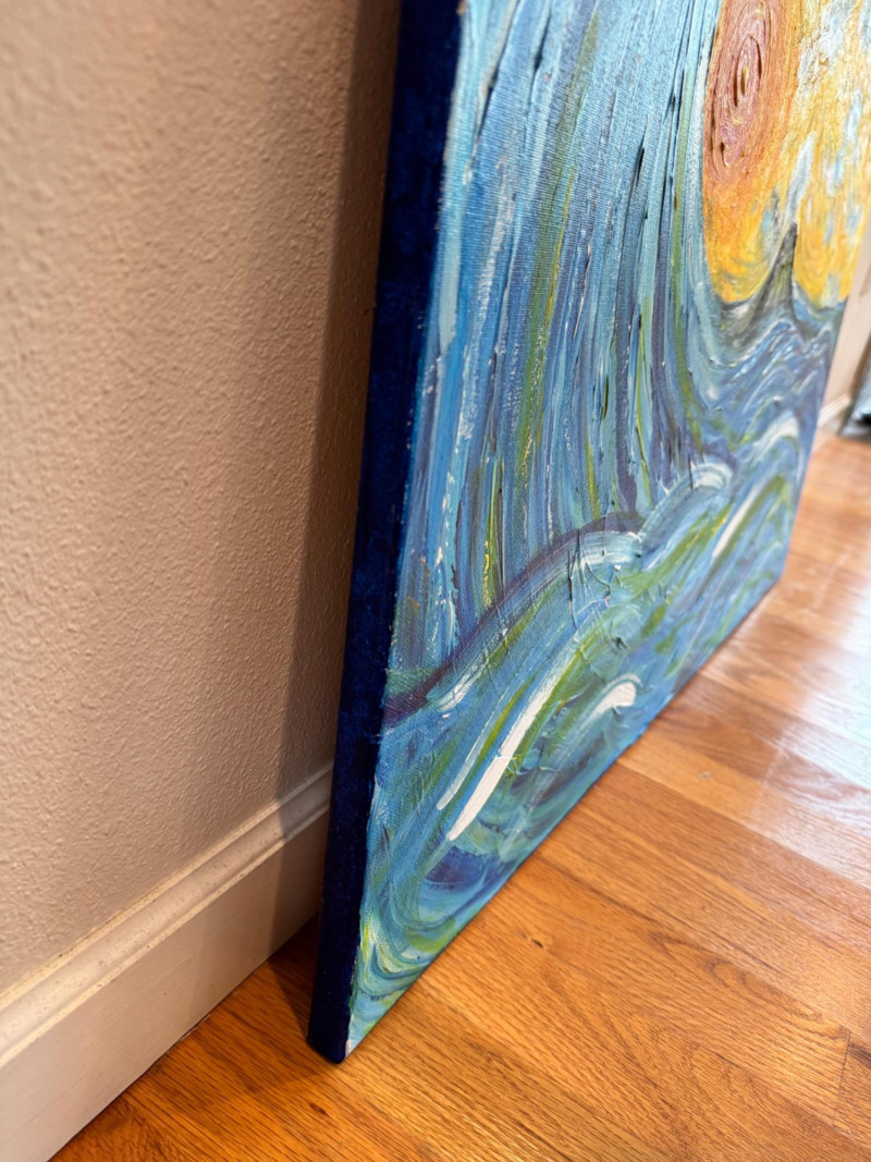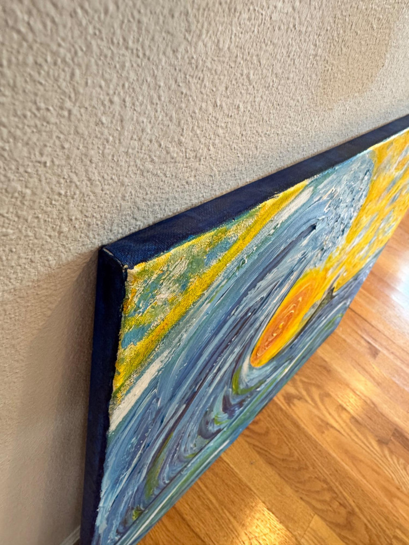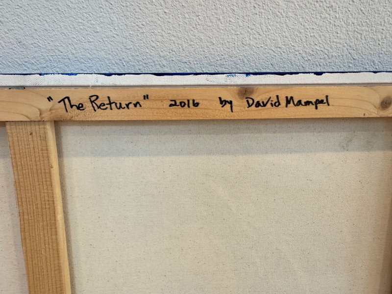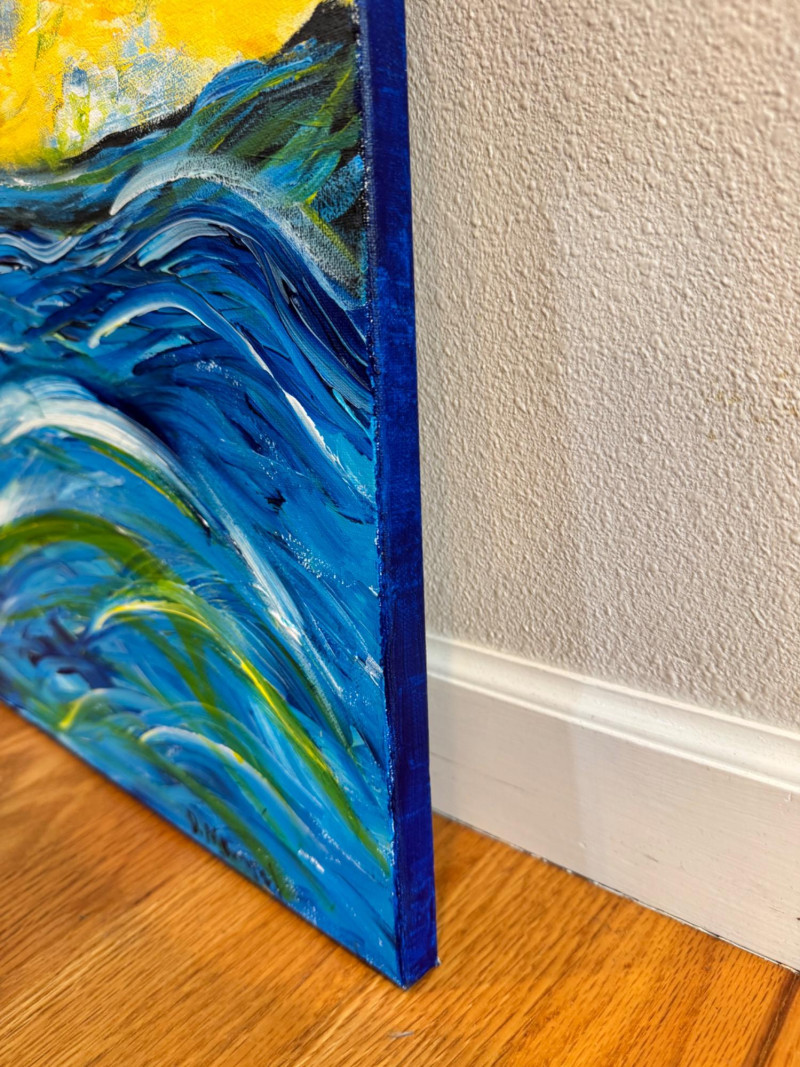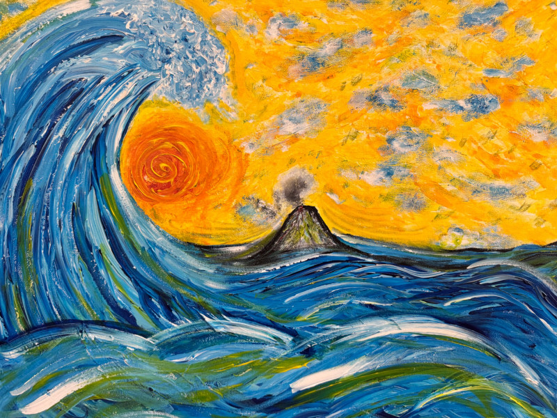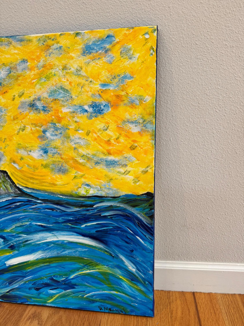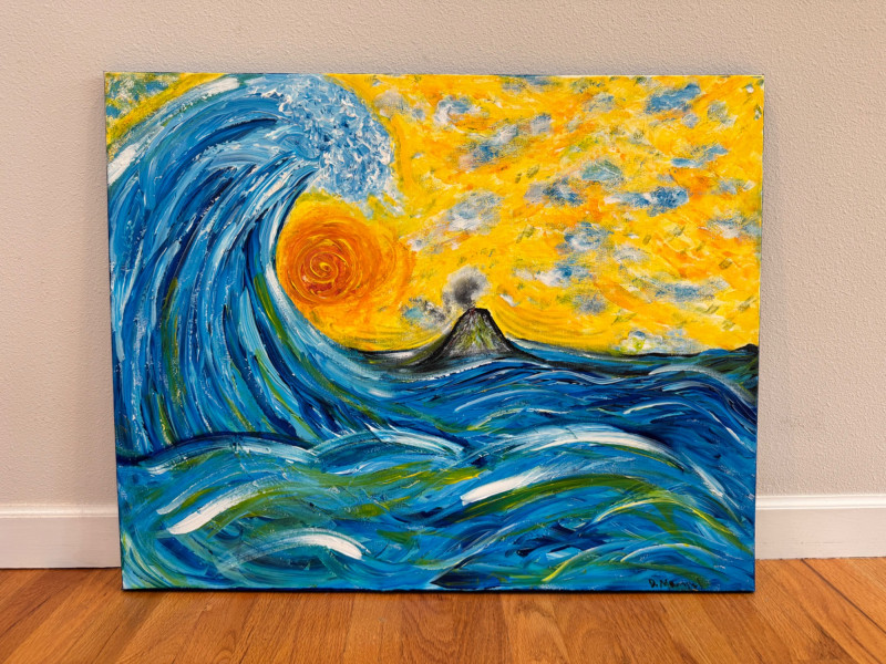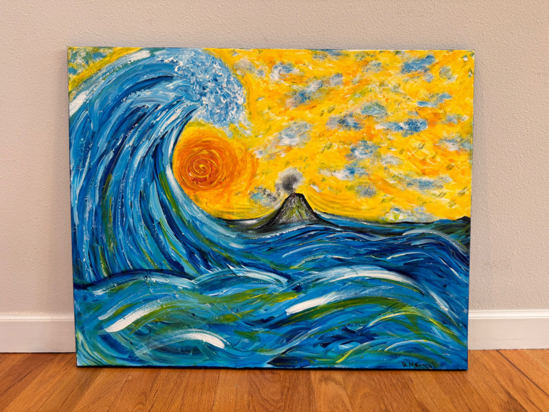 David Mampel Signed Painting – The Return (2016) Ocean Wave & Volcano. 30 x 24