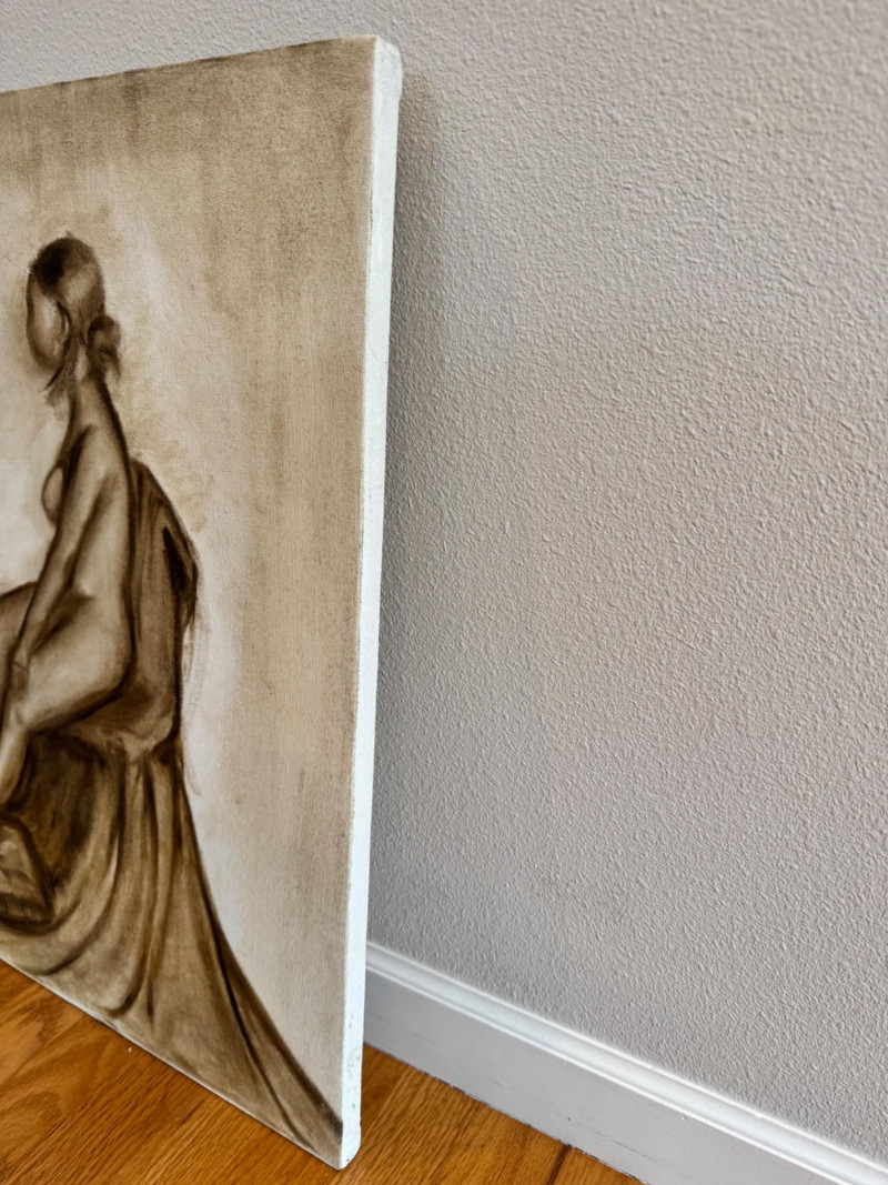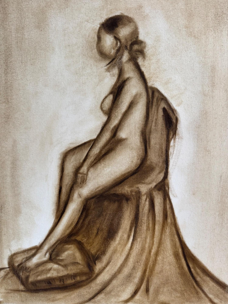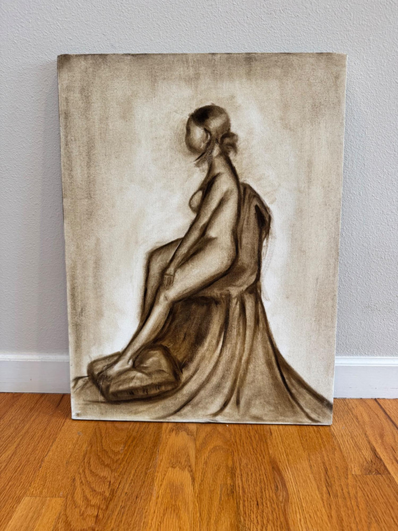 Lot # 46 - Nude Female Figure Study – Charcoal on Canvas