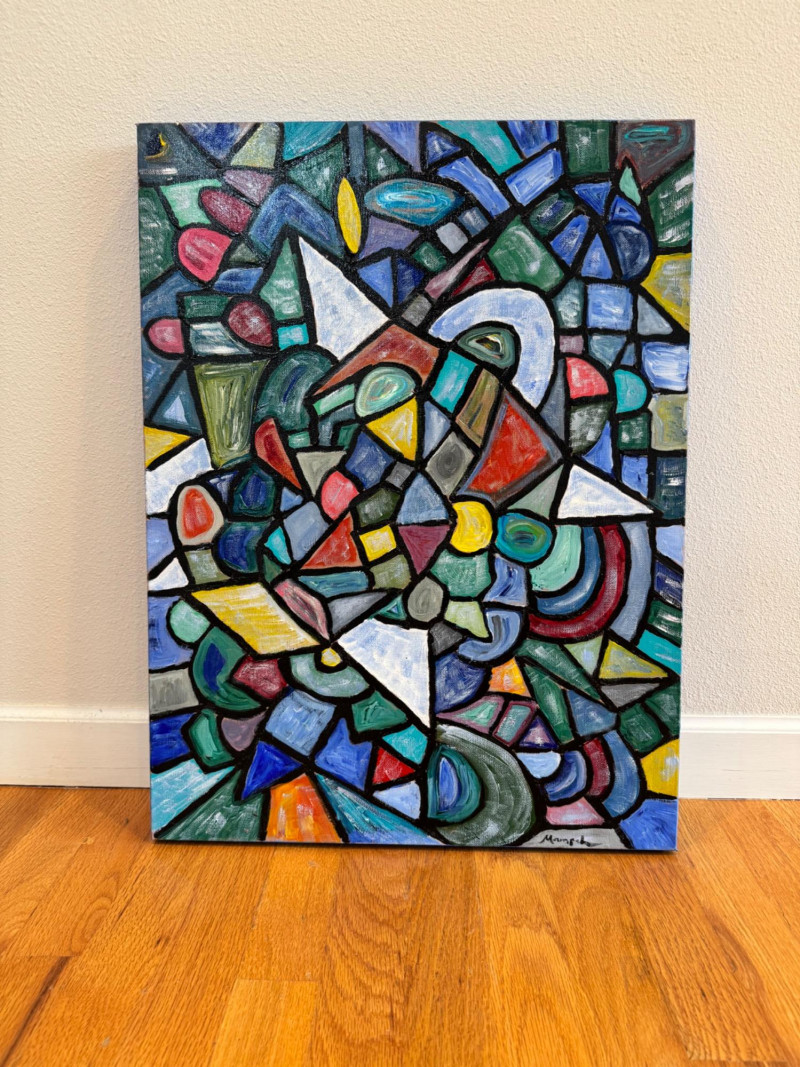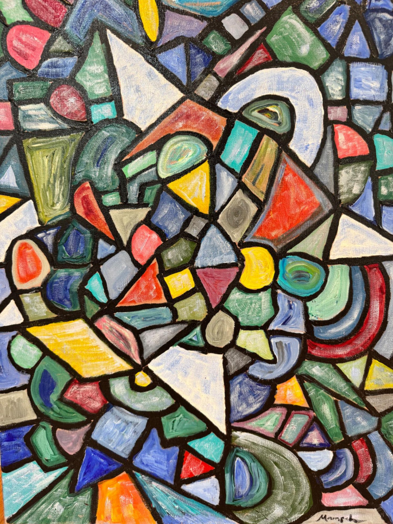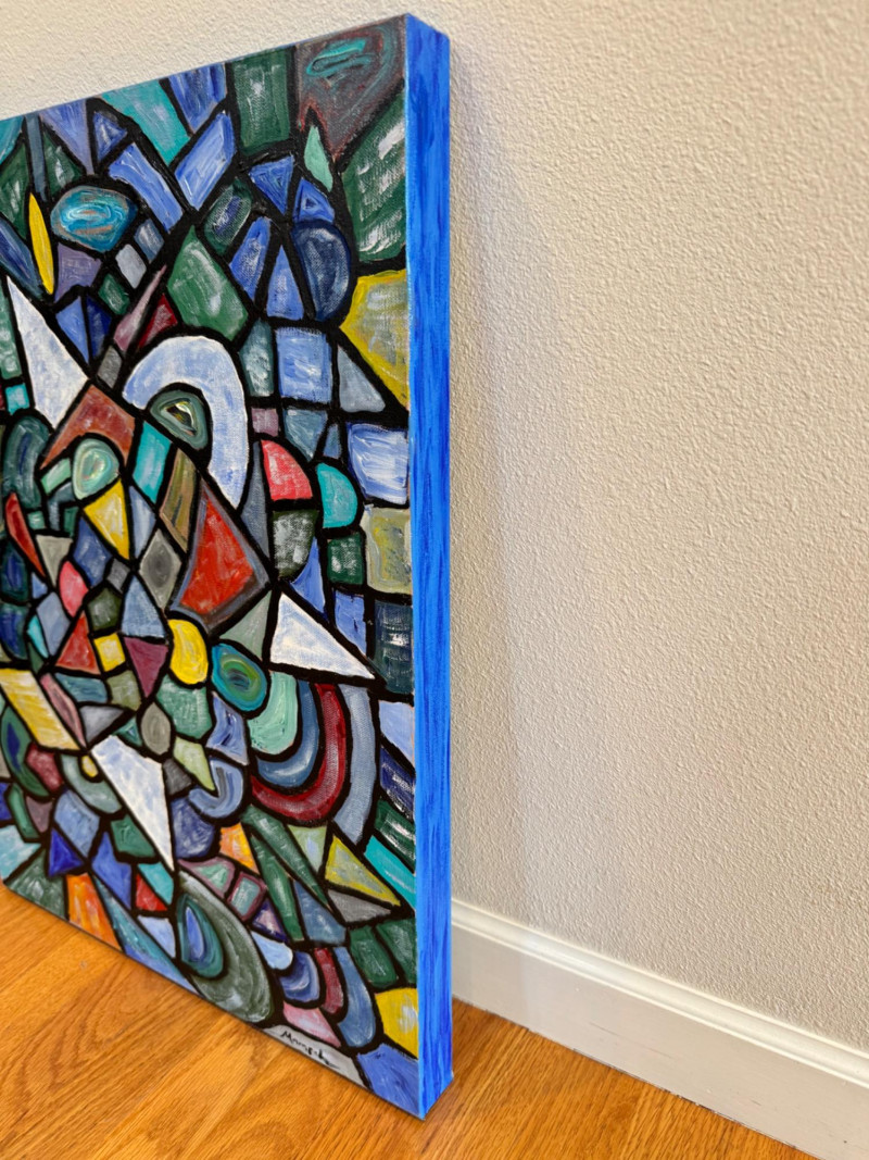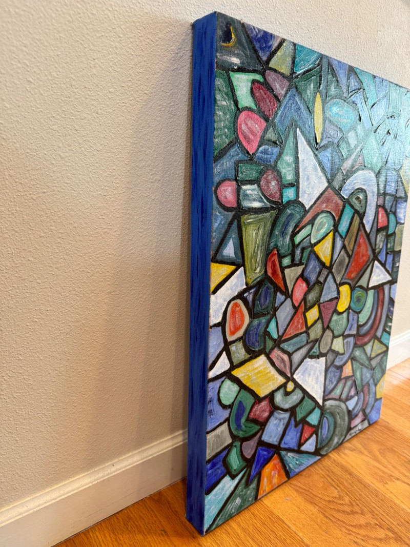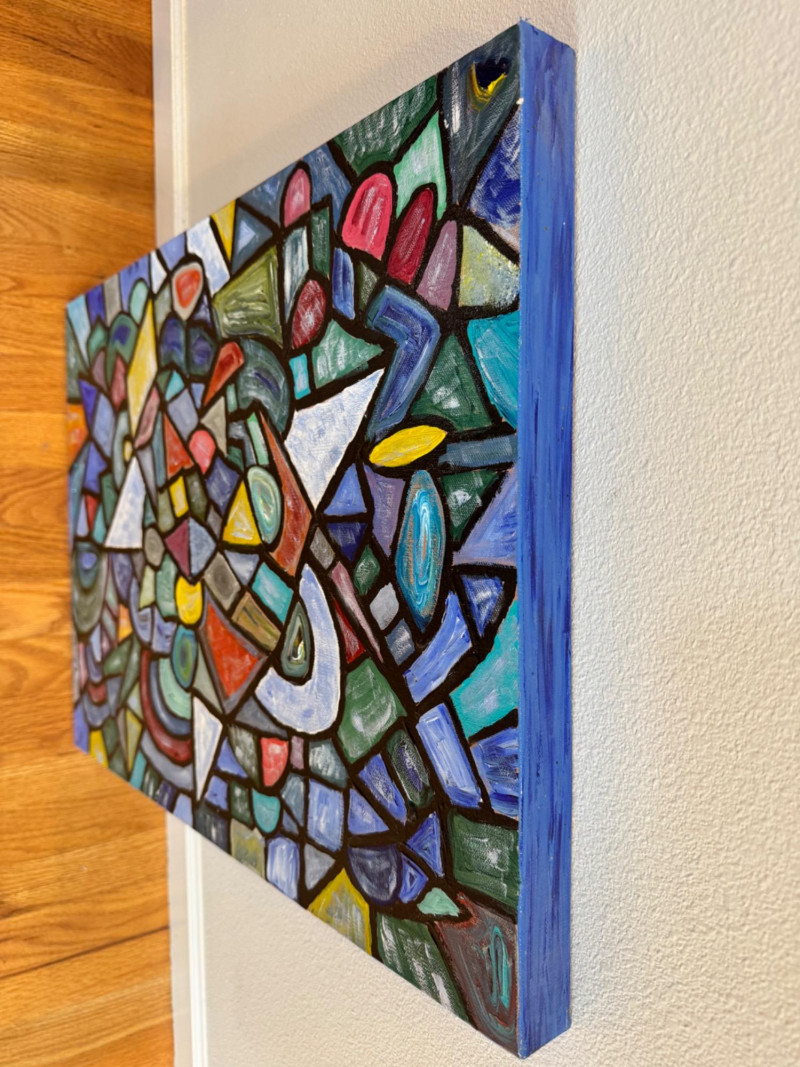 David Mampel Signed Abstract Painting – “Sacred Geometry” (2016). 18" x 24"