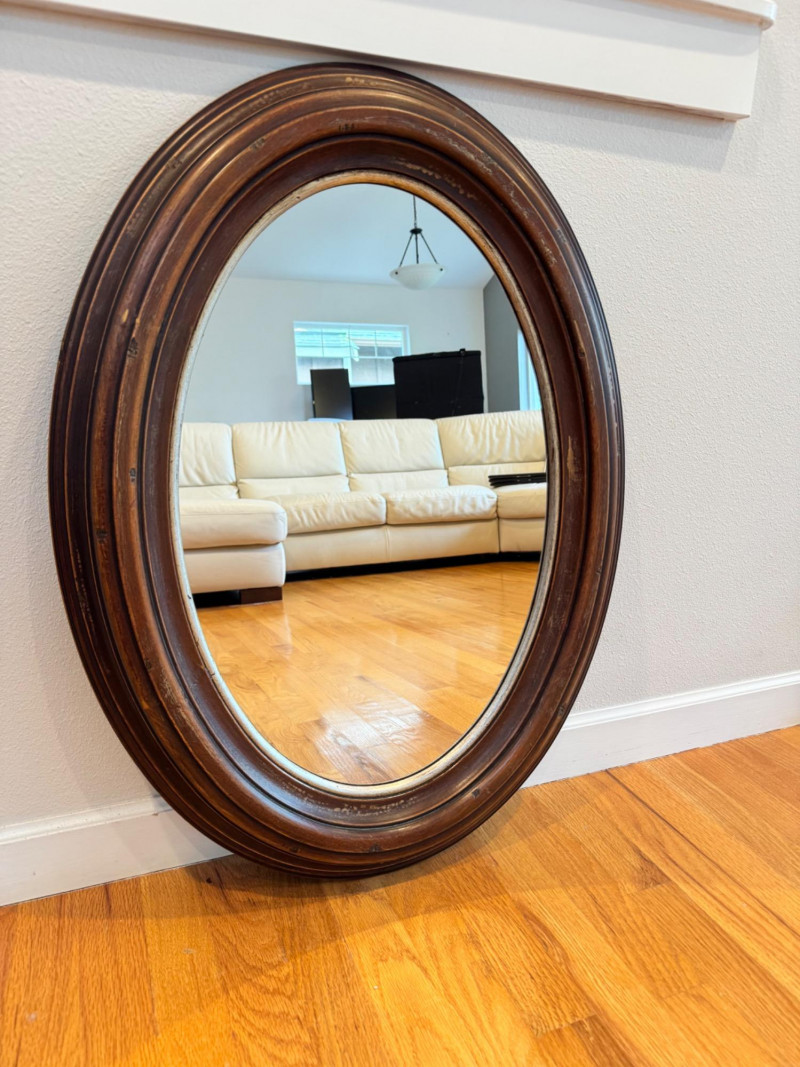 Roma Collection Oval Wall Mirror w/ Wood Frame. 30.75" x 22.75"