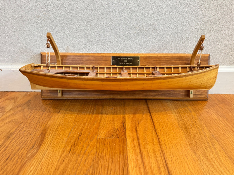 Lot # 54 - Wood Décor Lot – Paul S. Spates Canoe, Carved Duck, Boat & Rattan Orbs