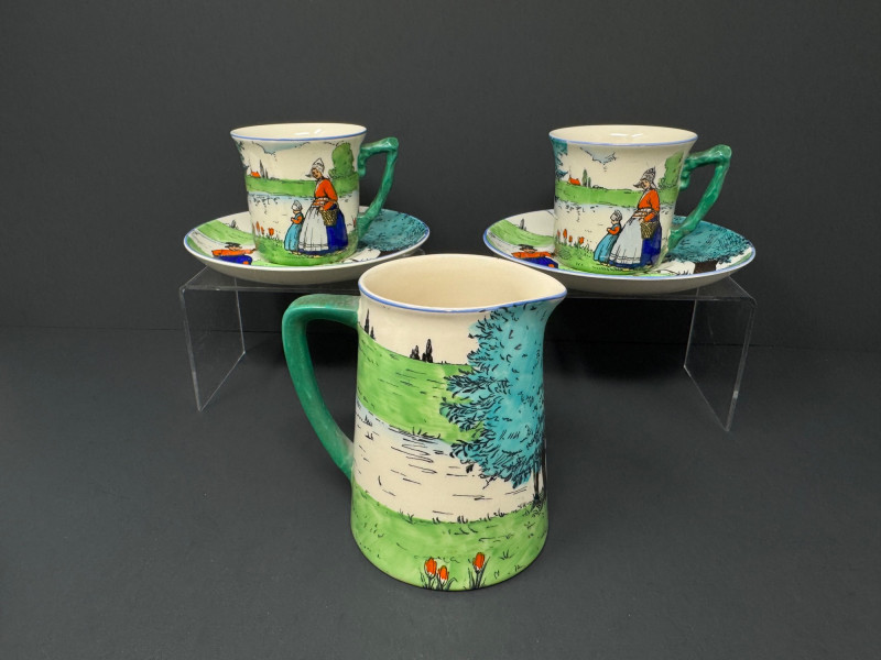 John Maddock & Sons Hand-Painted Tea Set – Cups, Saucers, Creamer +