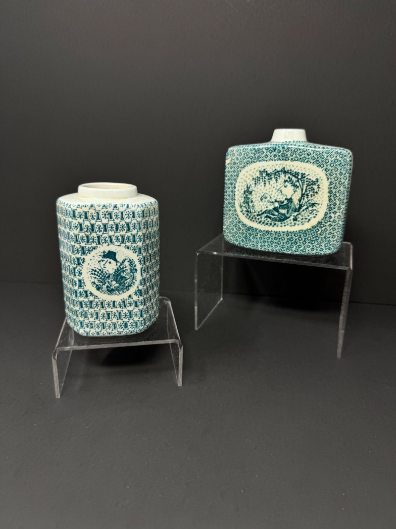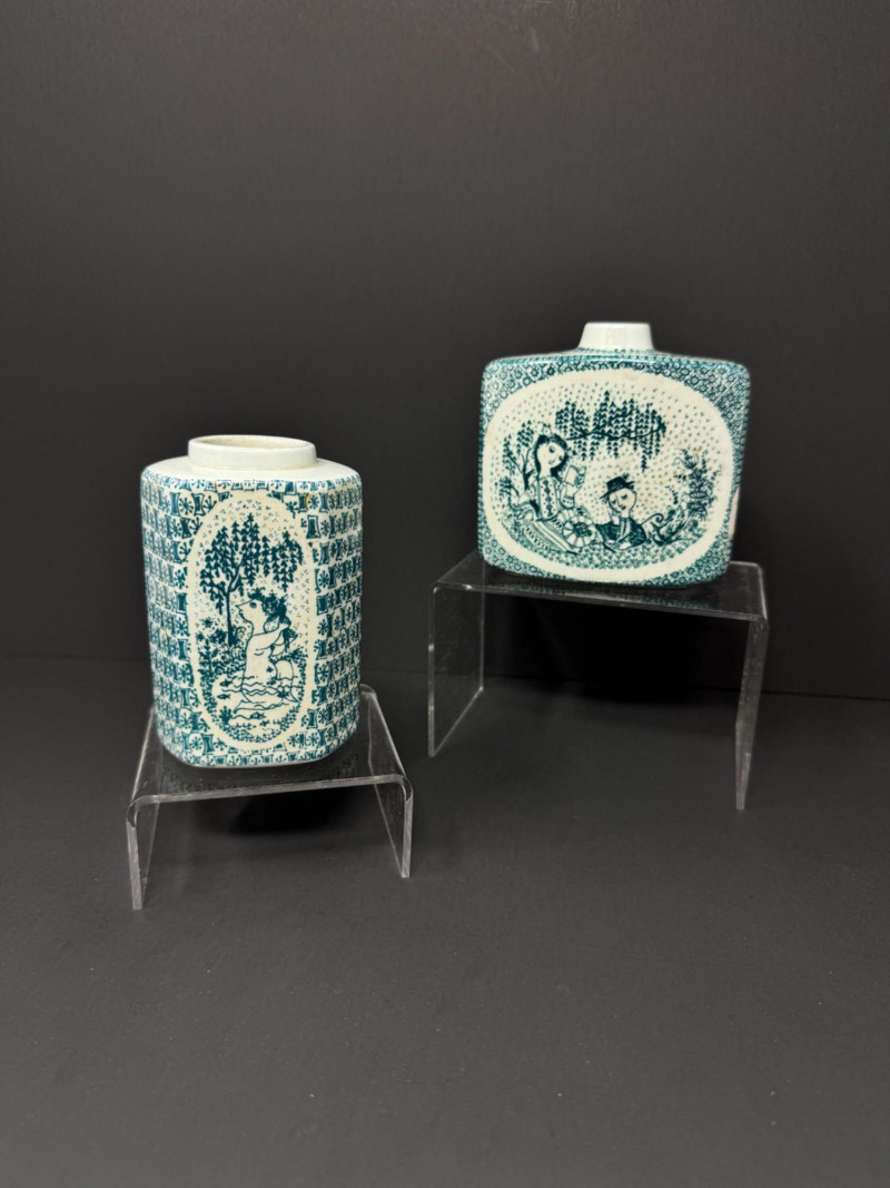 Pair of Bjorn Wiinblad Style Nymolle Ceramic Vases – Figural Design. Measure approx. 4" tall