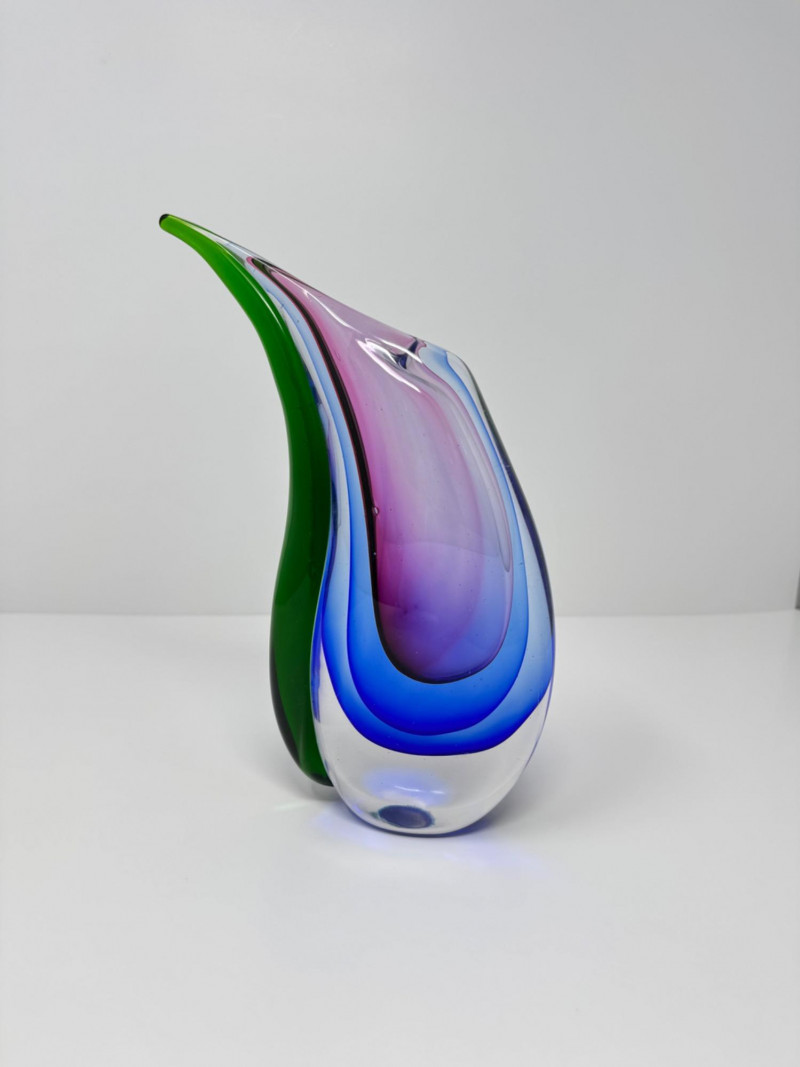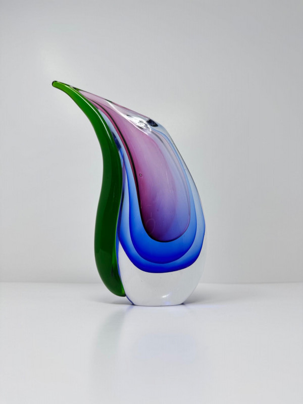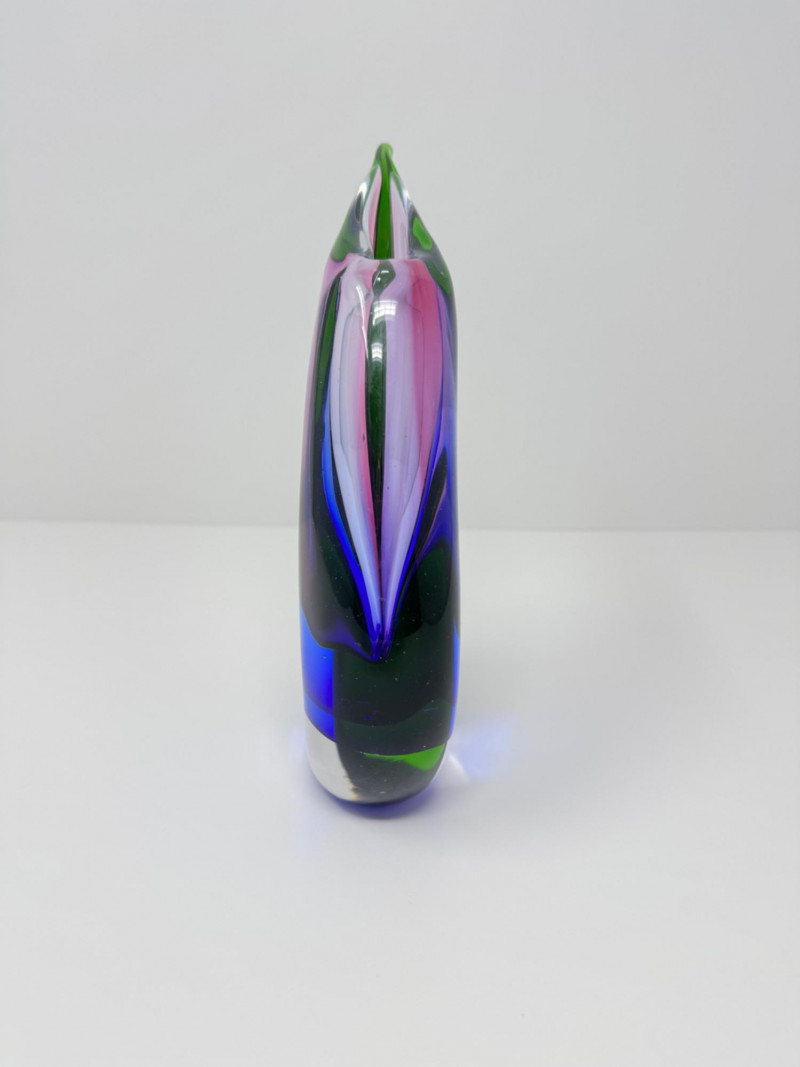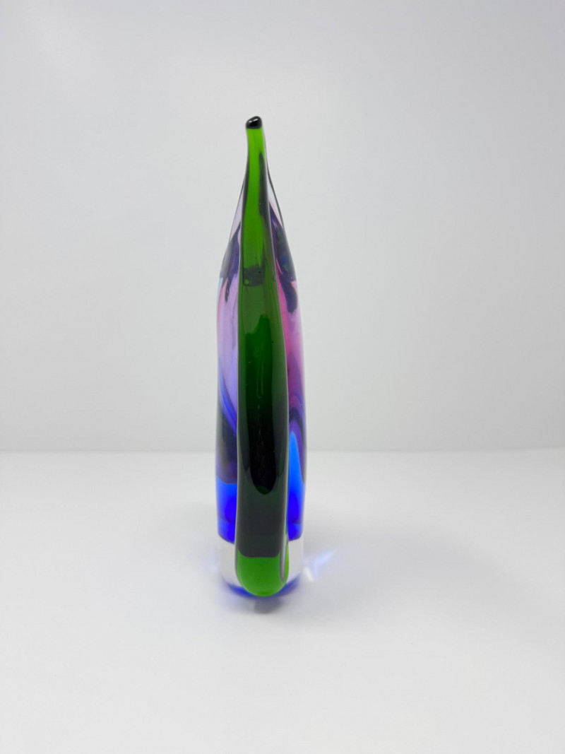 Murano Style Art Glass Sculpture – Green, Blue & Purple. Height: 8 1/2”