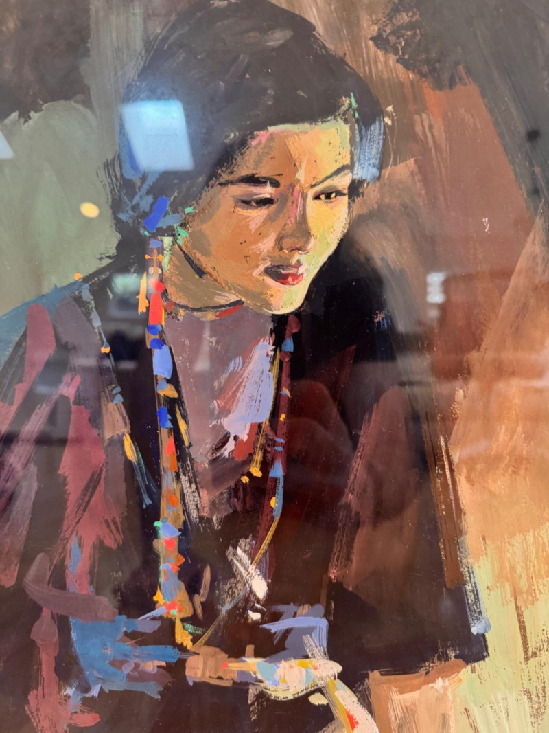 Lot # 68 - Framed Portrait Print – Woman w/ Colorful Beads, Silver Frame