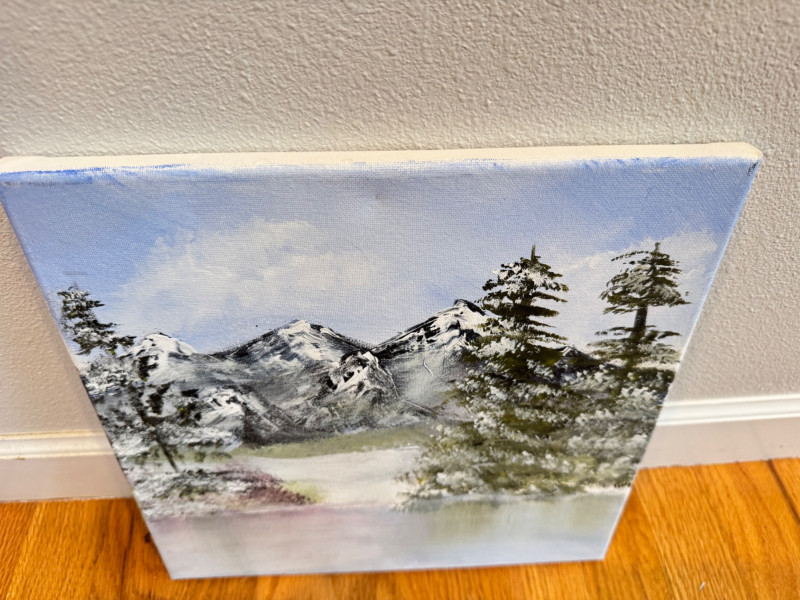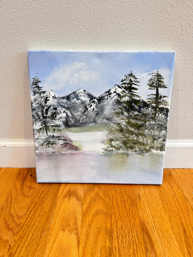 Original Mountain & Lake Landscape Oil Painting on Canvas. 12” x 12”