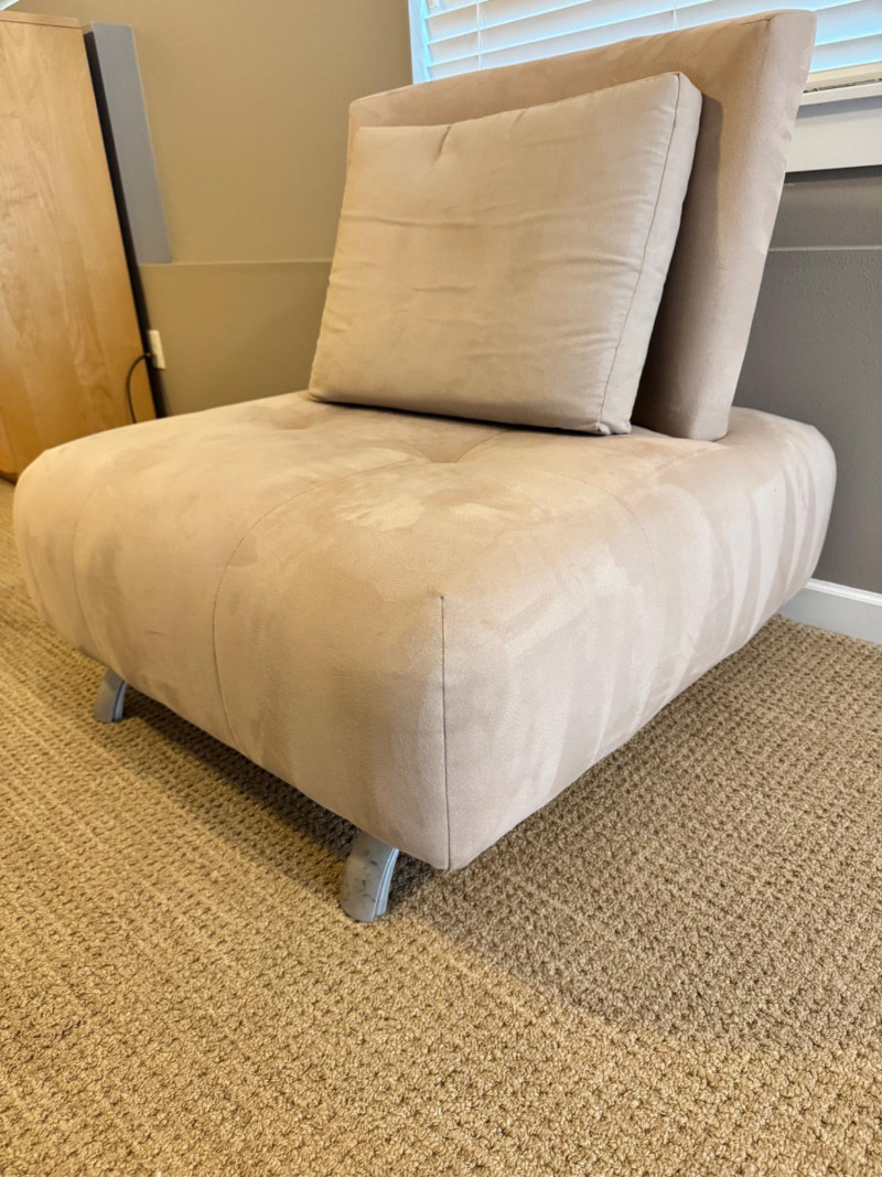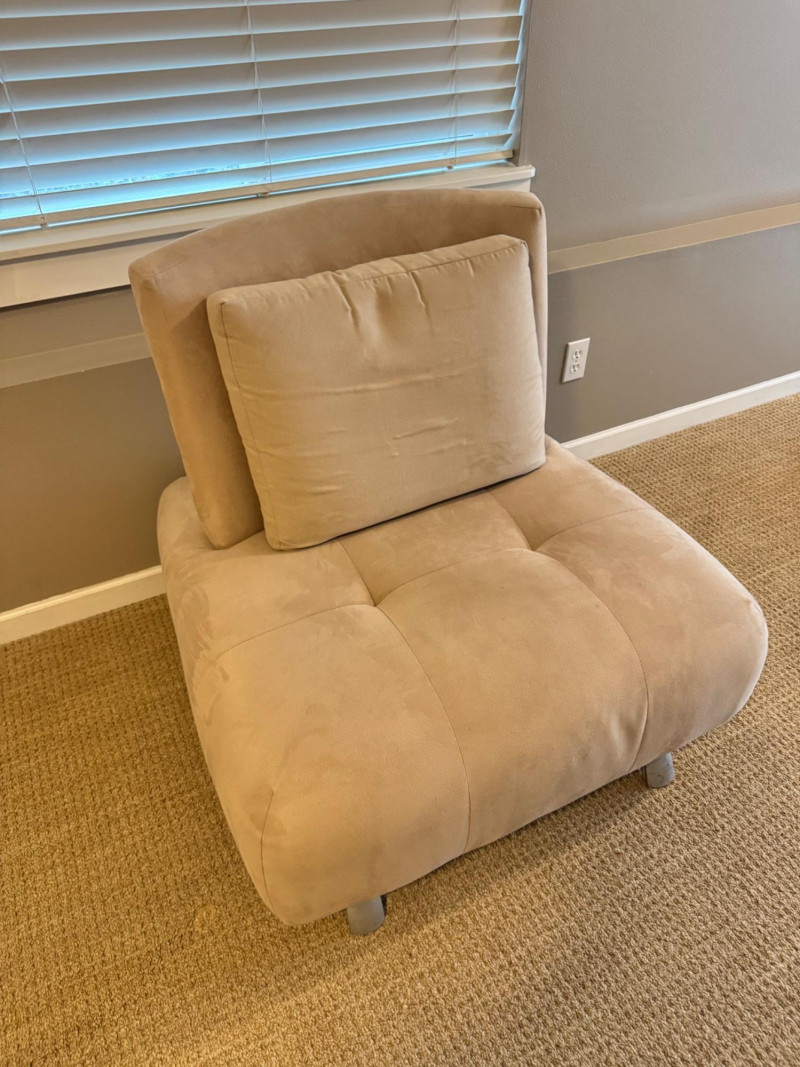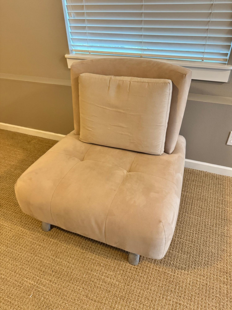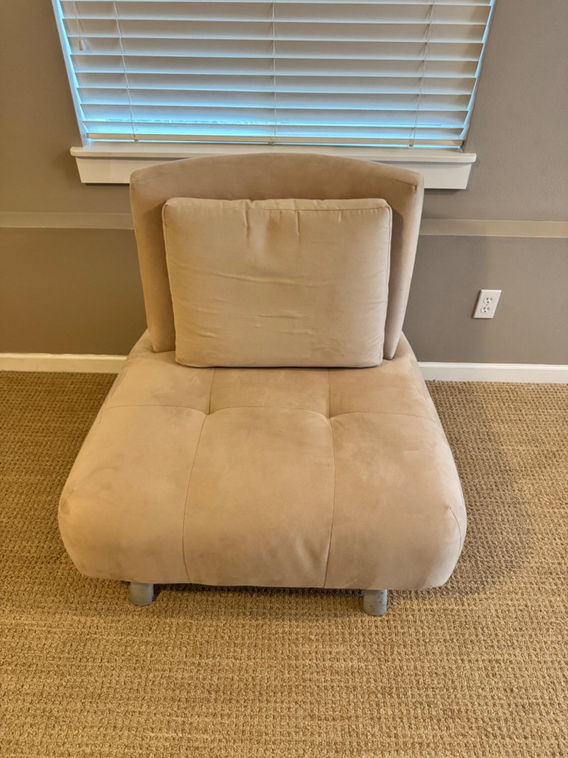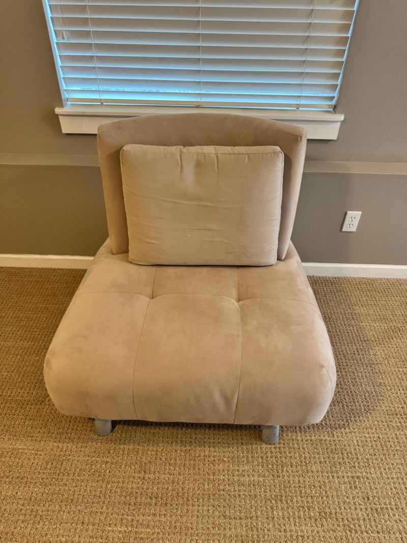 Beige Armless Accent Chair w/ Tufted Seat & Matching Pillow.