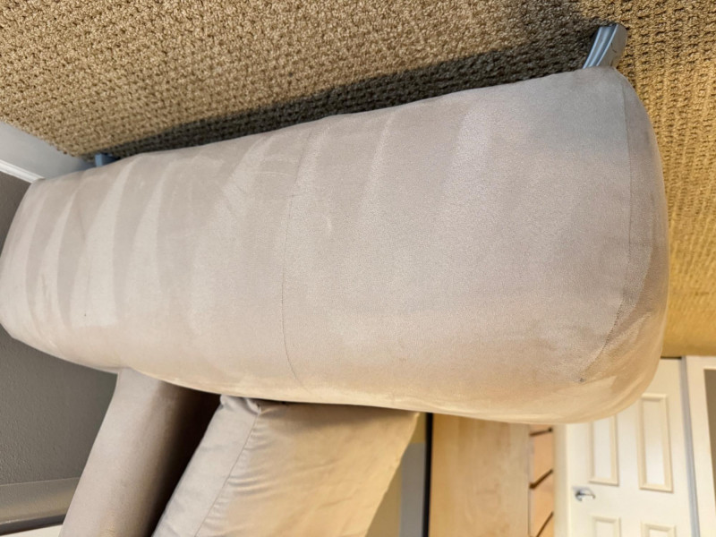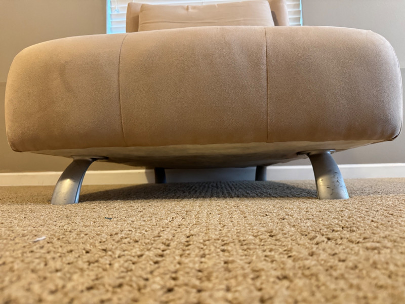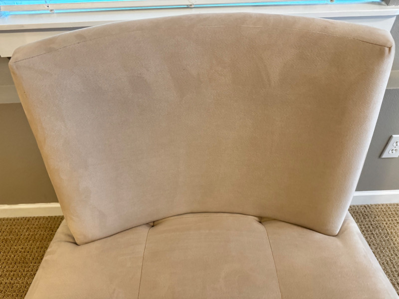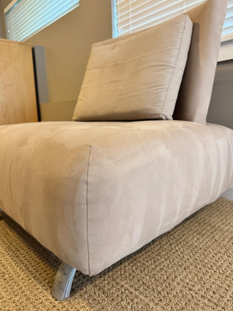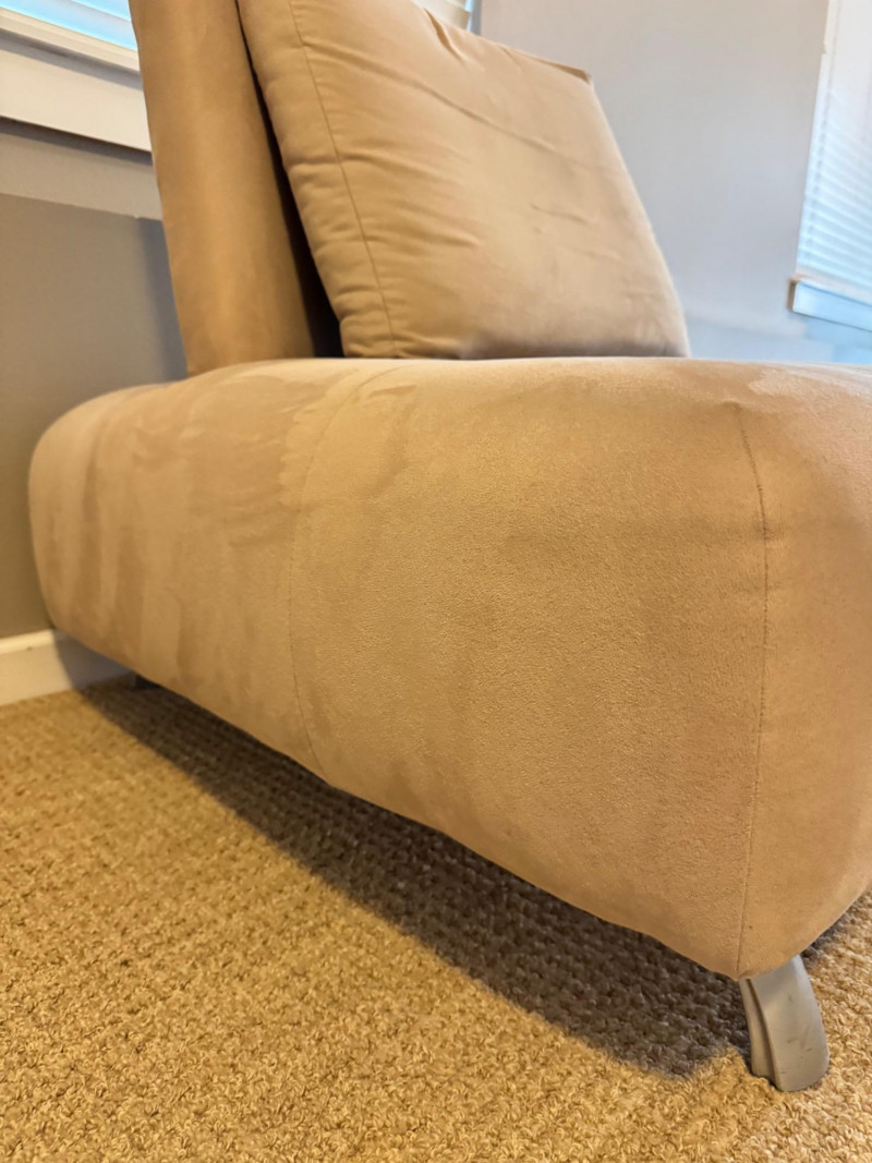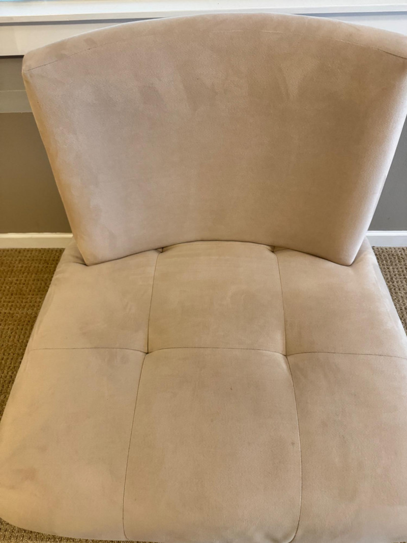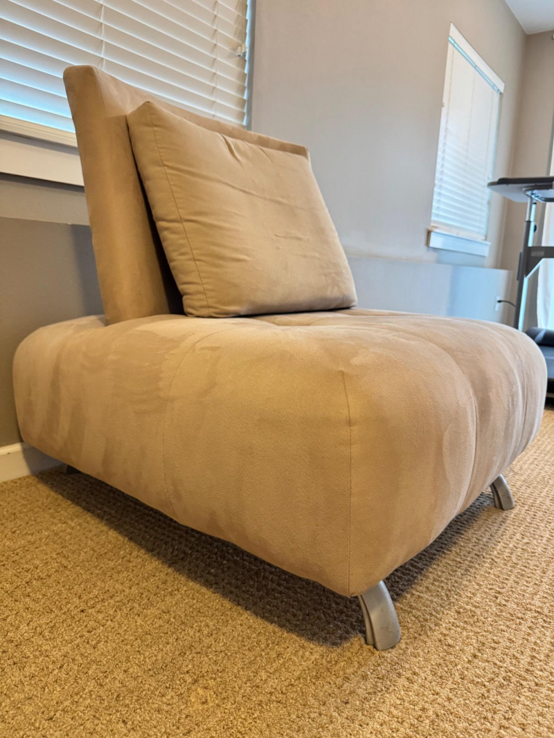 Beige Armless Accent Chair w/ Tufted Seat & Matching Pillow.