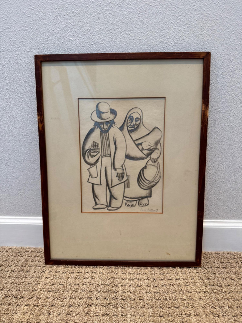 Signed Drawing of Couple in Traditional Clothing – Framed.