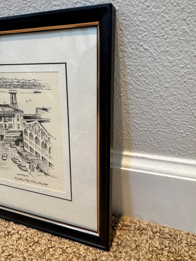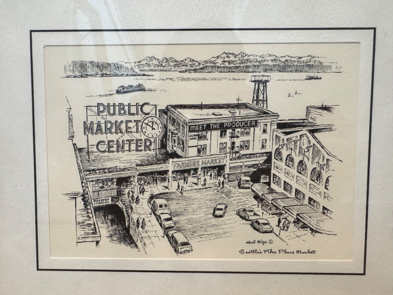 Framed Hal Mize Print – Seattle’s Pike Place Market. Framed size approx. 10" x 8"
