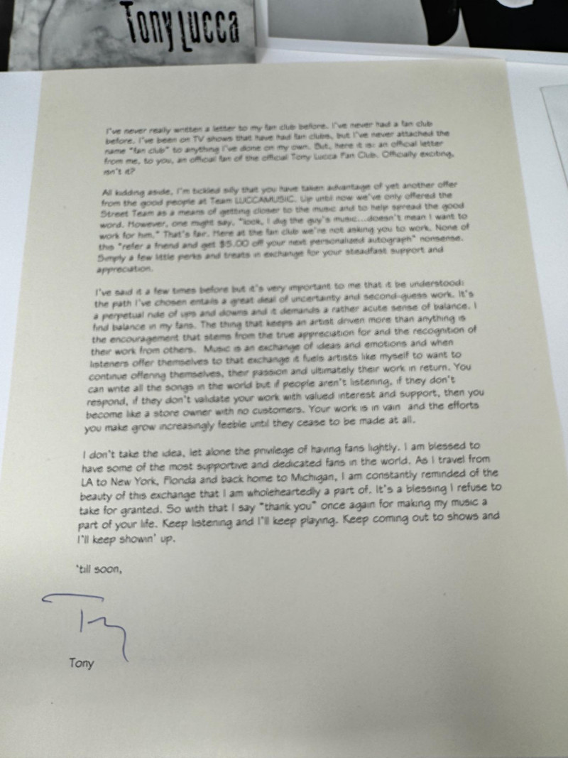 Tony Lucca Signed Photos, CD, Fan Letters & Memorabilia.
