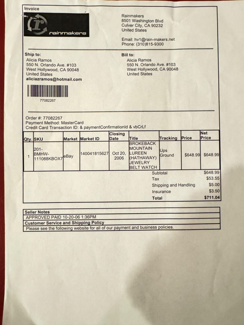 Brokeback Mountain Screen-Used Prop, Anne Hathaway's Belt Watch.