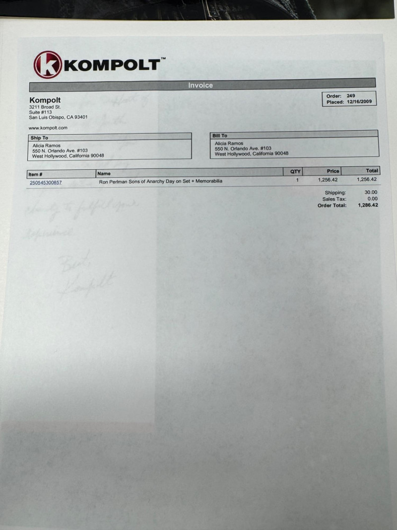 Lot # 101 - Sons Of Anarchy Season 3 Signed Memorabilia + Ron Perlman Photo $1,286