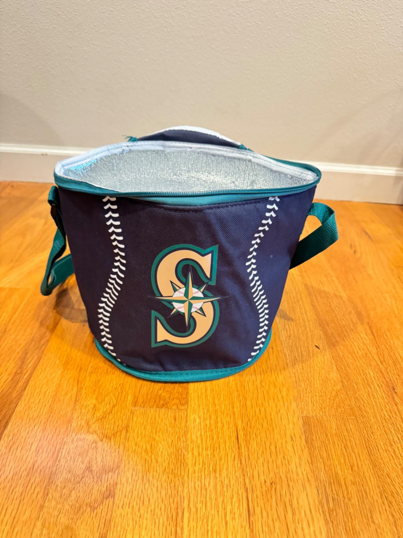 Seattle Mariners Collectibles – Bammers Bears, Cooler Bag & Metal Bin. Bucket: 19 x 10
