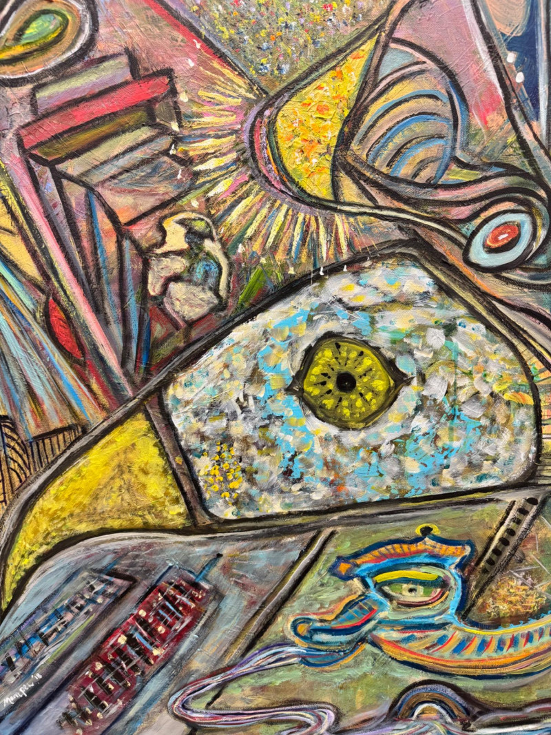David Mampel 2018 Abstract Painting “Sophia Returns” - Signed. Measures 24” x 36”