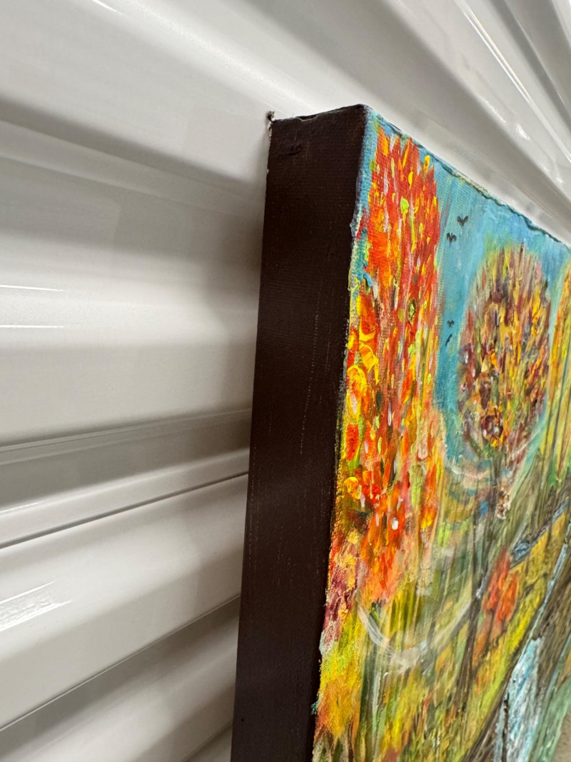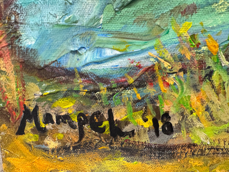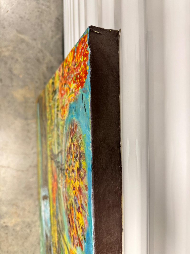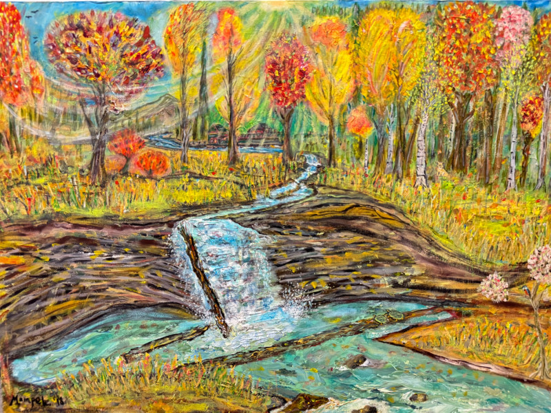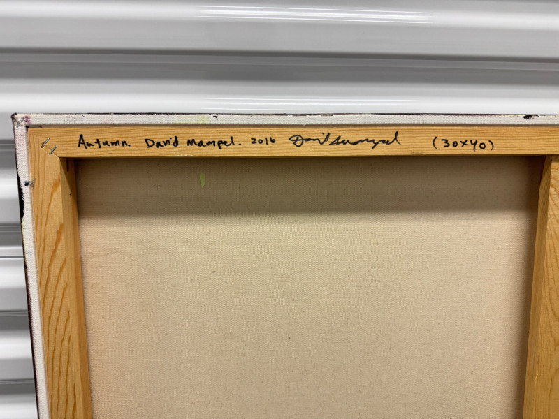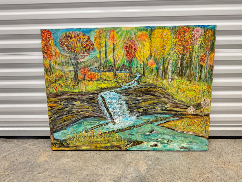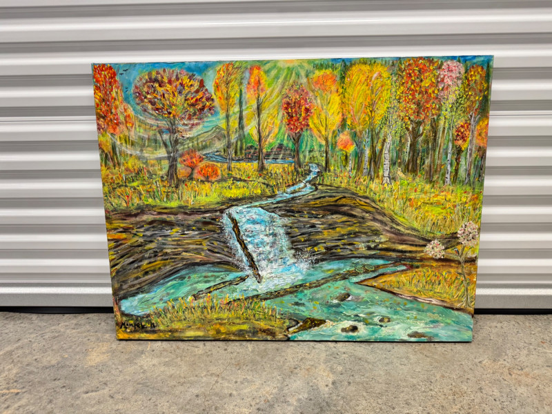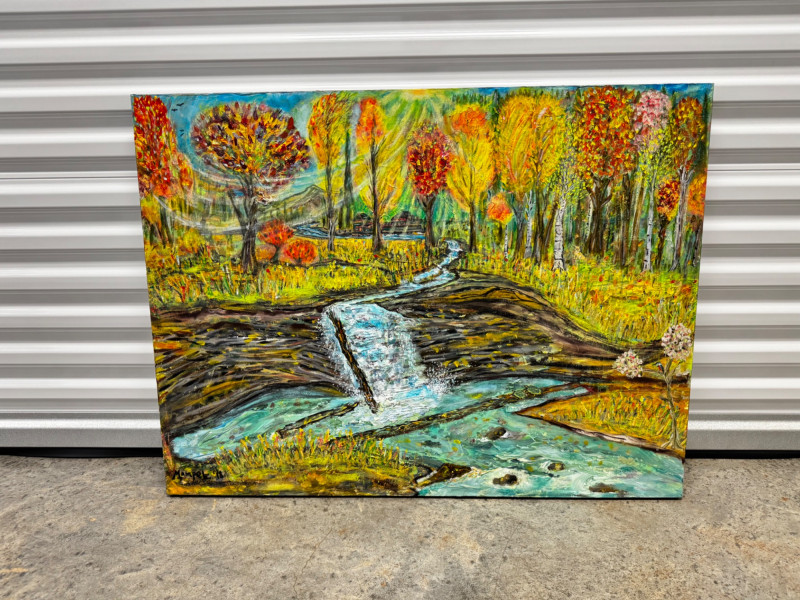 David Mampel 2016 Landscape Painting “Autumn” Waterfall Scene - Signed. Measures 40” x 30”