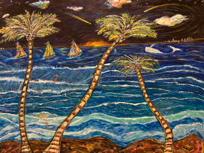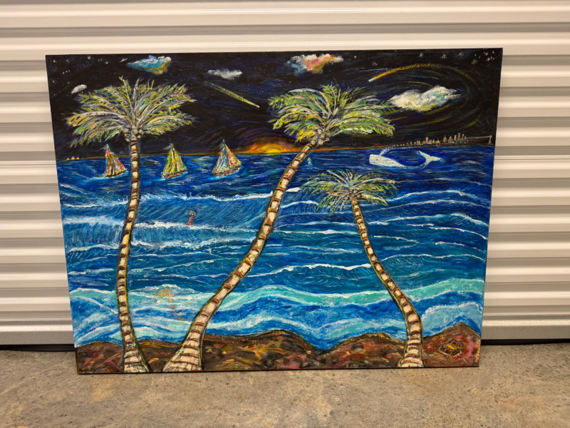 David Mampel 2018 Seascape Painting “Tres De Mysterio” - Signed. Measures 48” x 36”