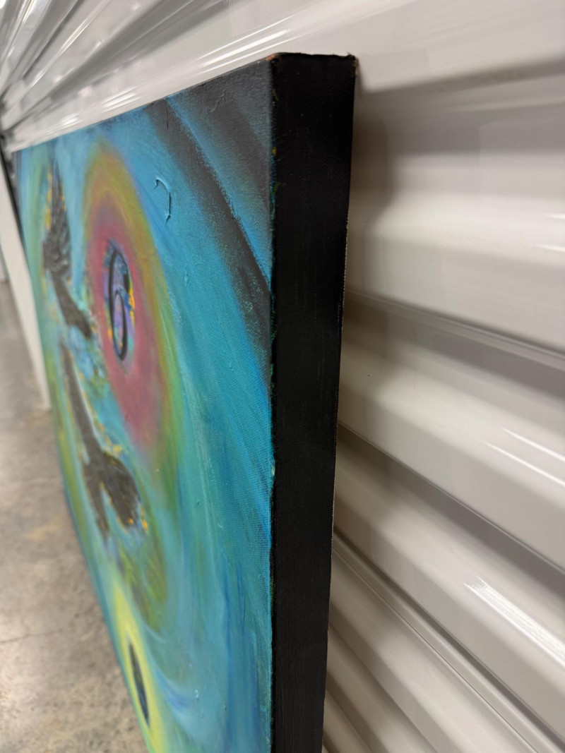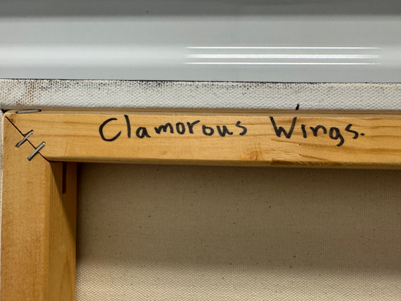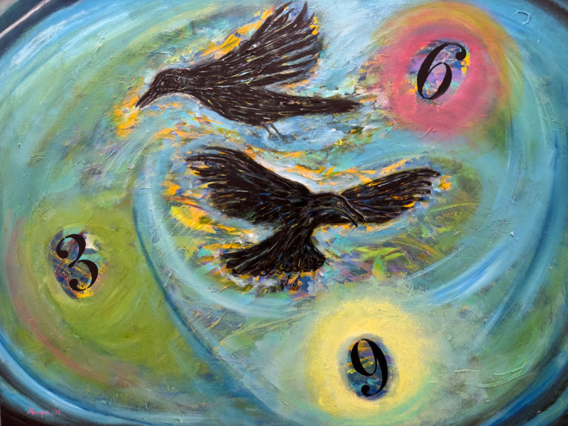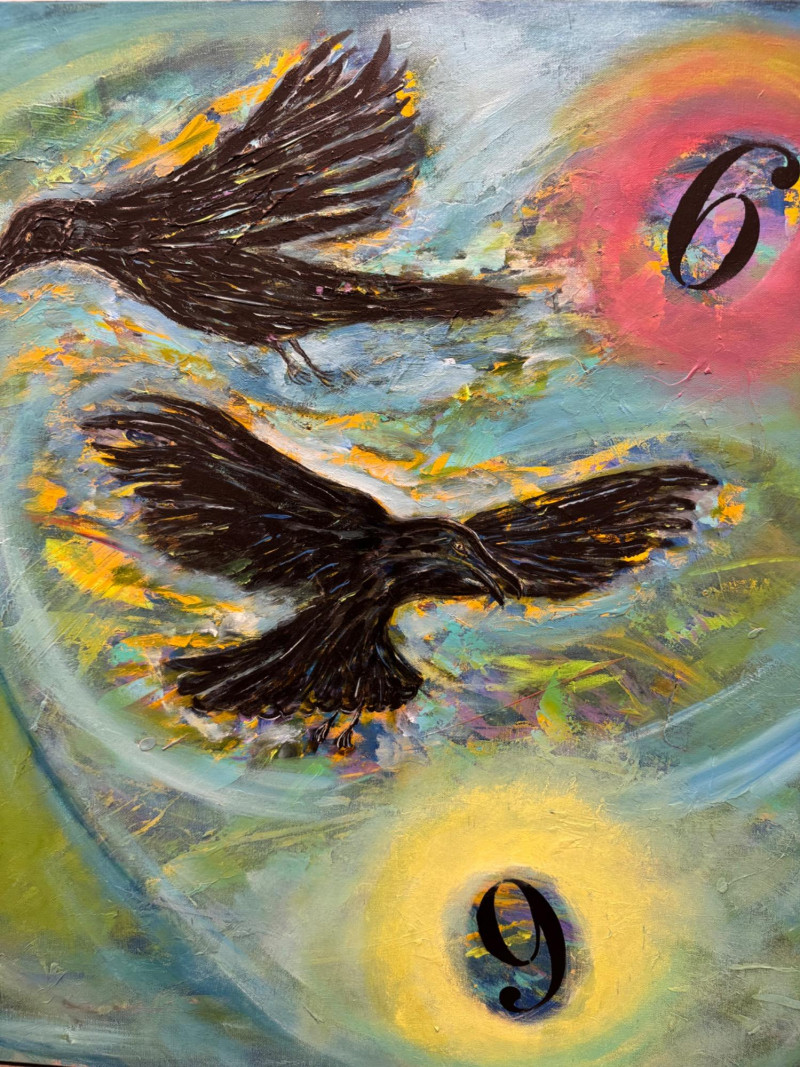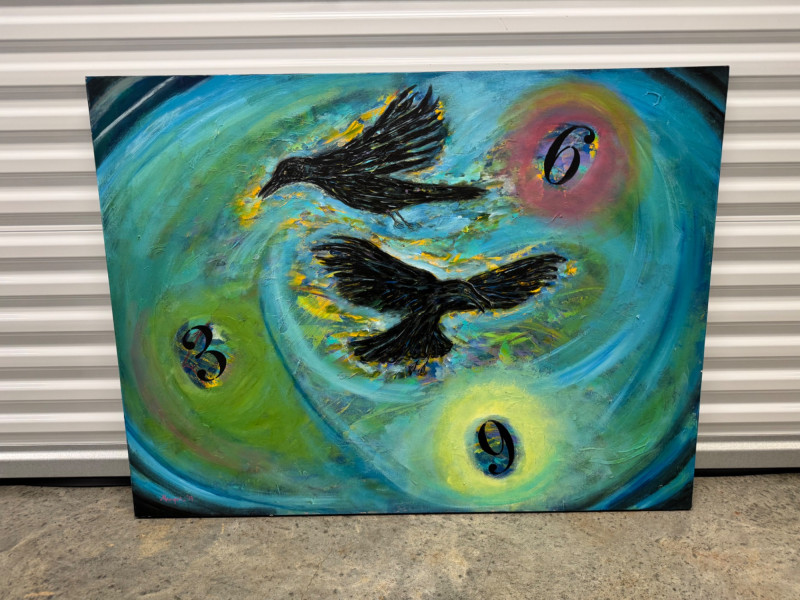 David Mampel 2019 Painting “Clamorous Wings” Ravens & Numbers - Signed. Measures 48” x 36”
