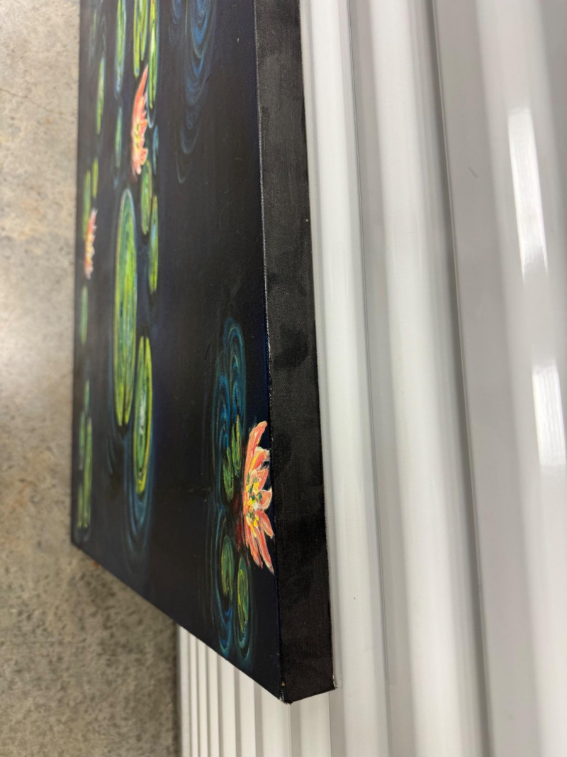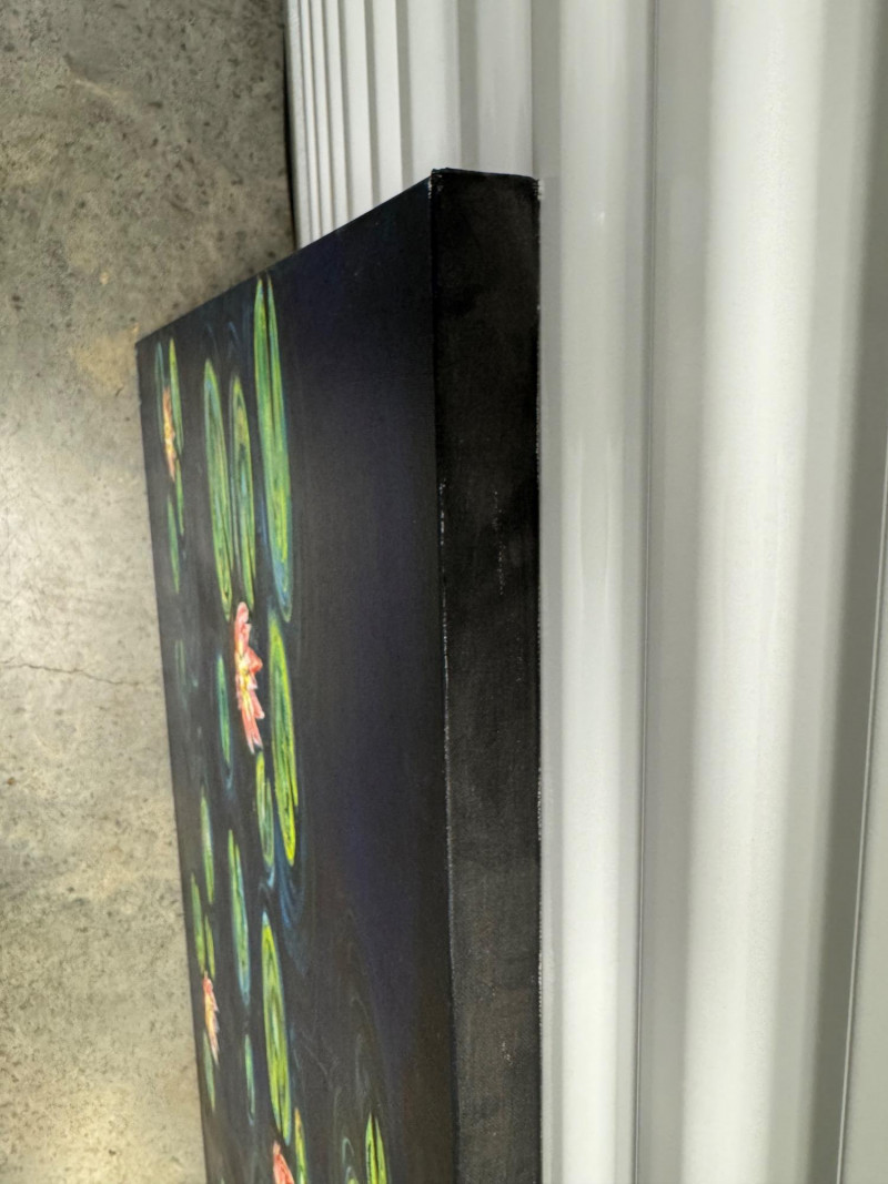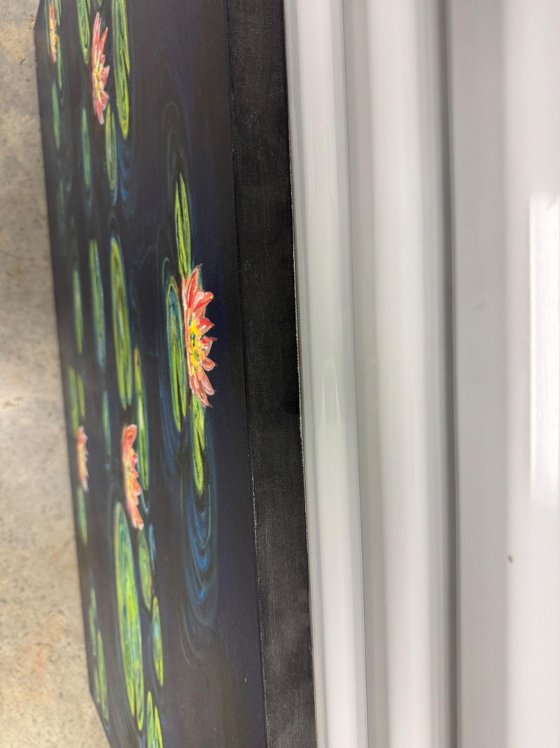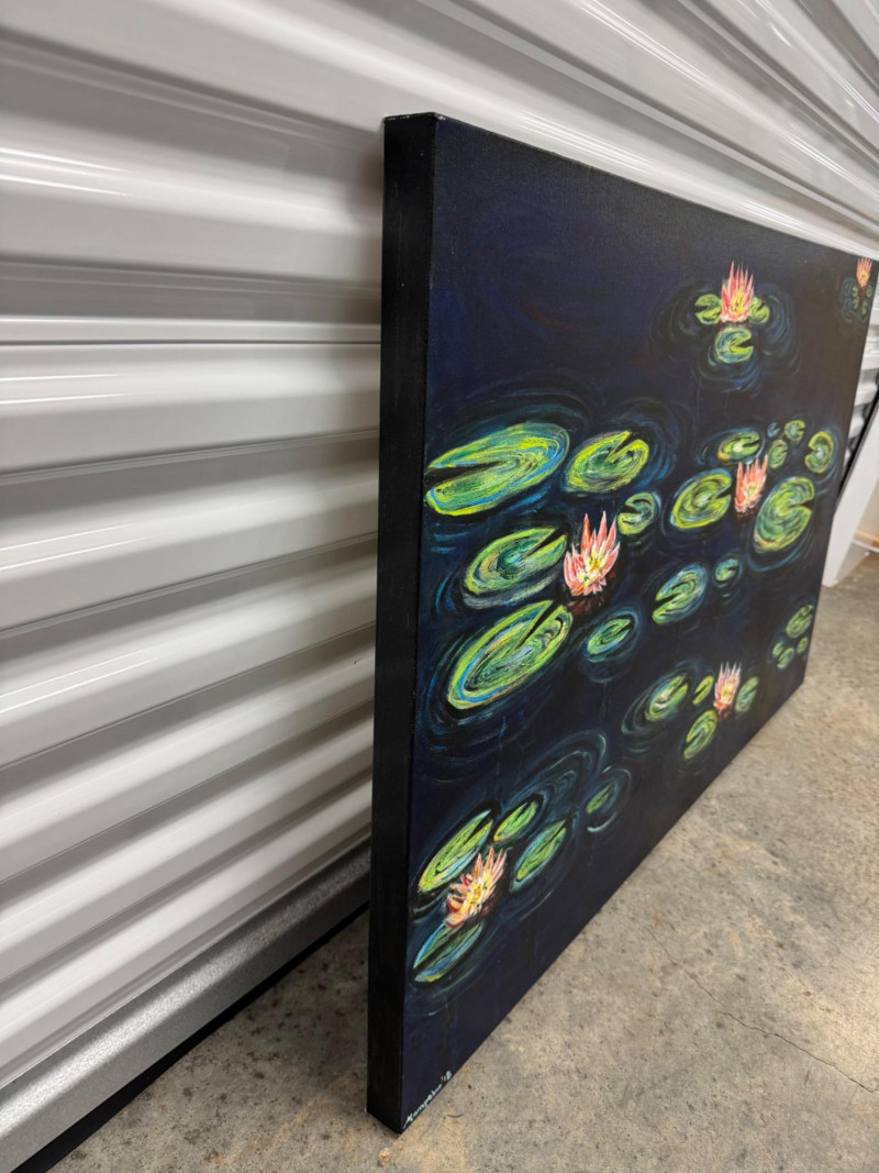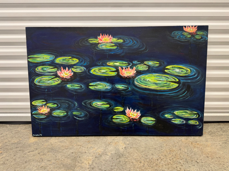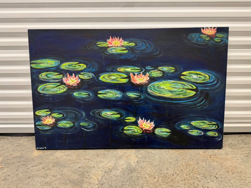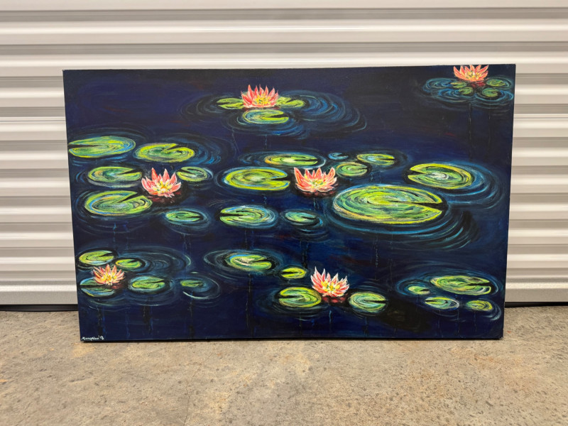 David Mampel 2018 Painting “Luminous Midnight” Lotus Pond - Signed.