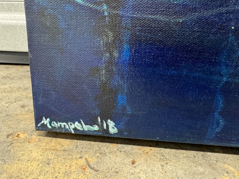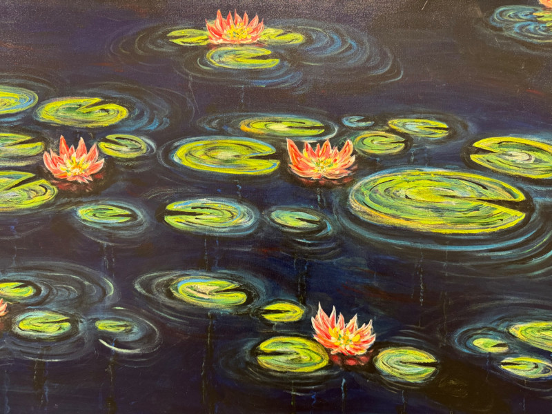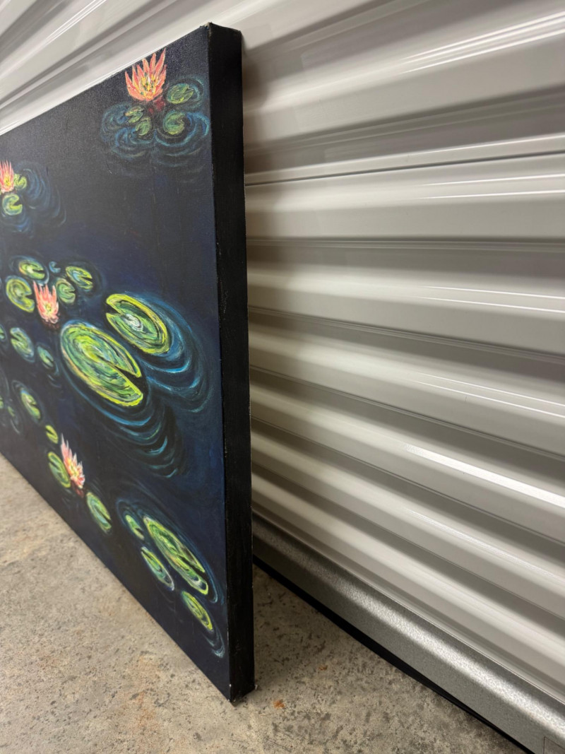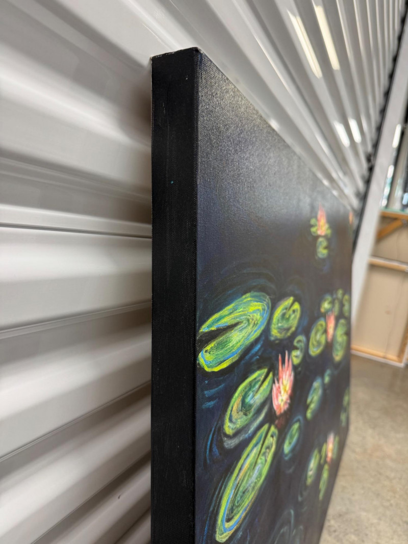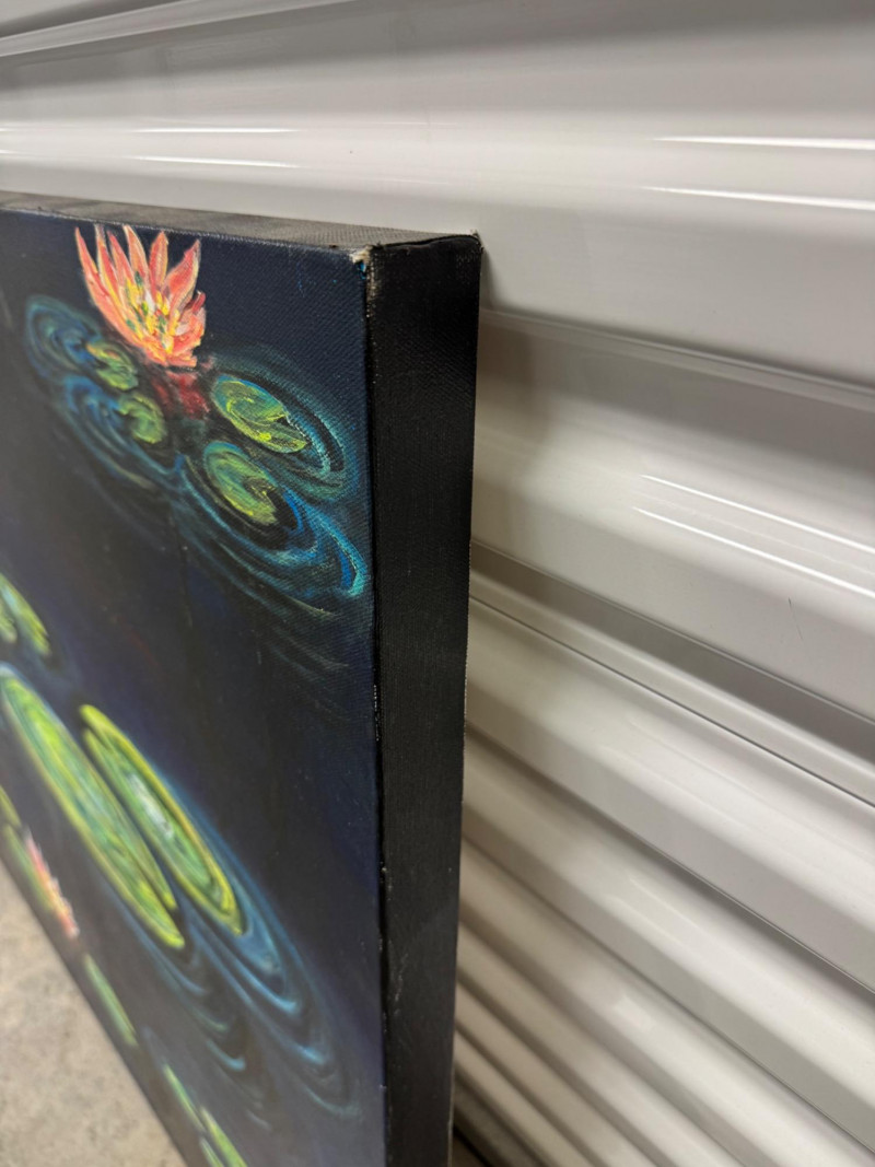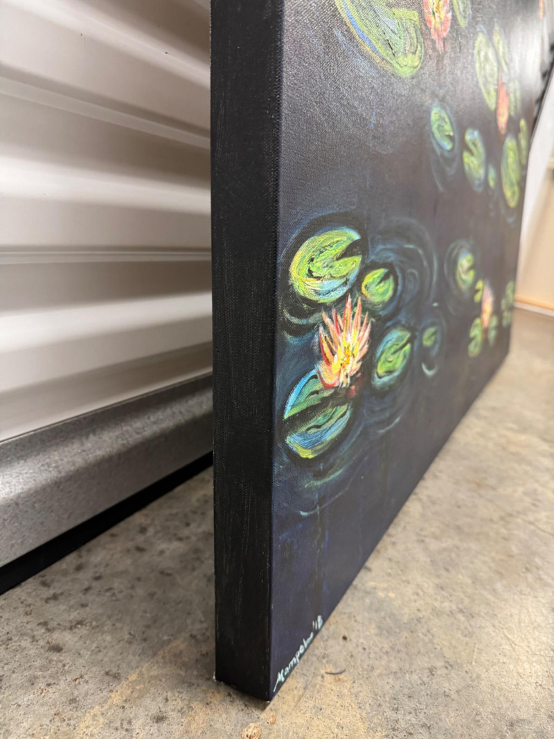 David Mampel 2018 Painting “Luminous Midnight” Lotus Pond - Signed.