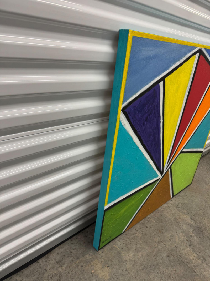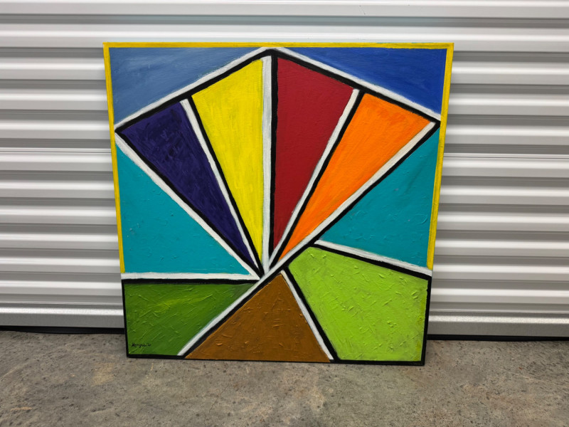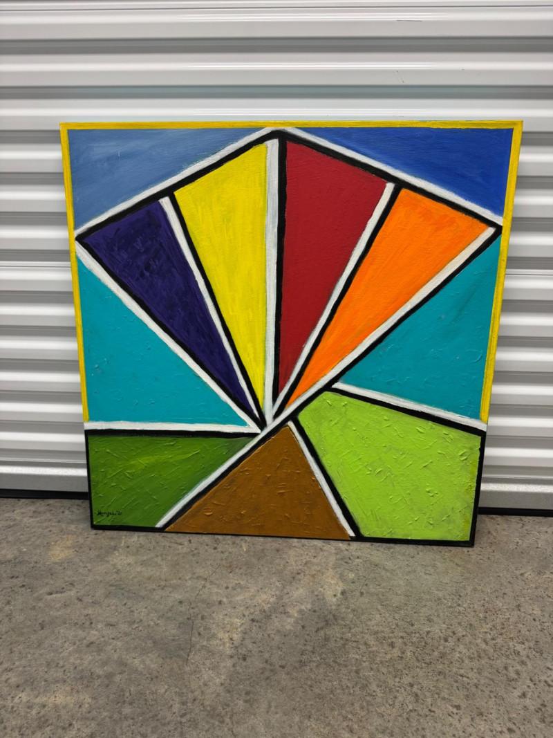David Mampel 2017 Geometric Abstract Painting “Spring” - Signed. Measures 36” x 36”