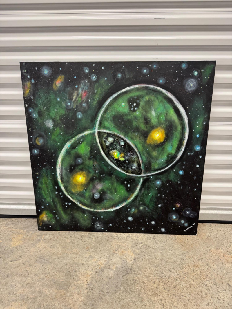 David Mampel 2020 Abstract Painting “Key of Life” Cosmic - Signed. Measures 36” x 36”