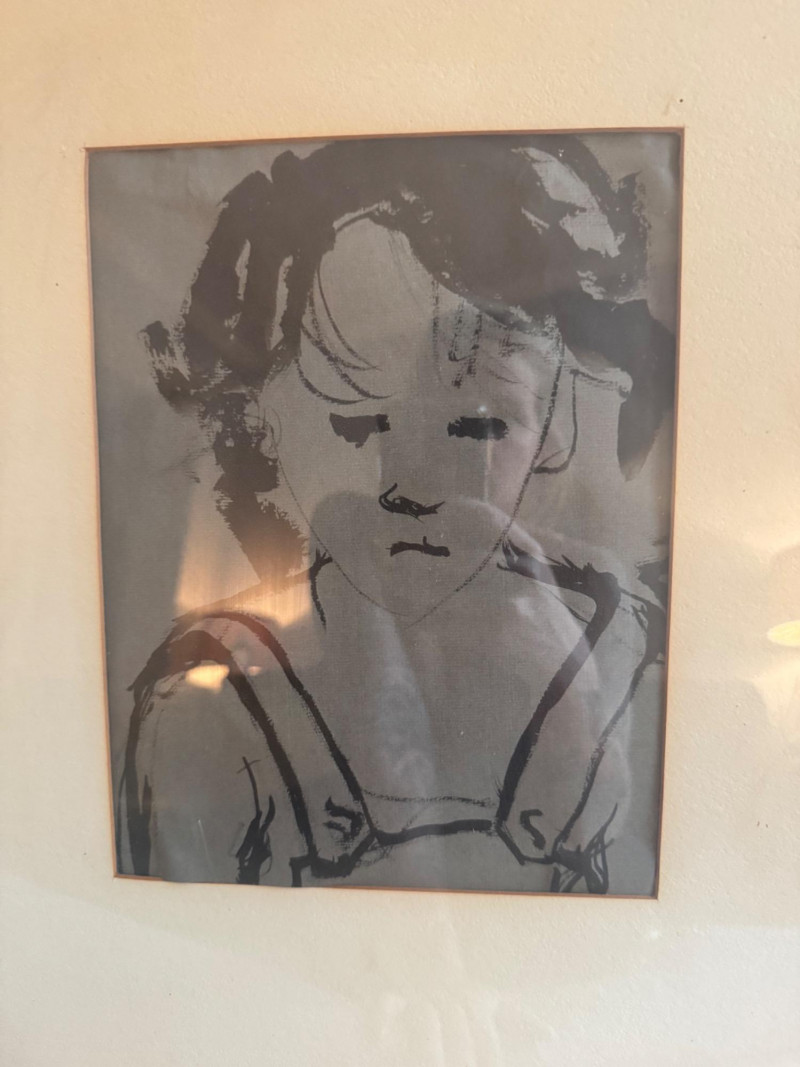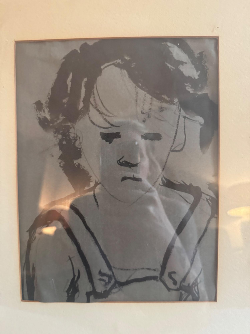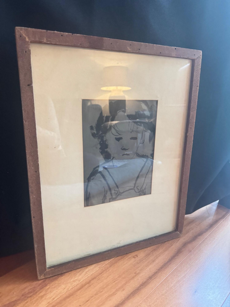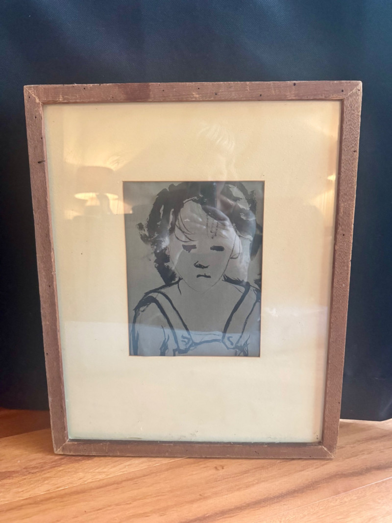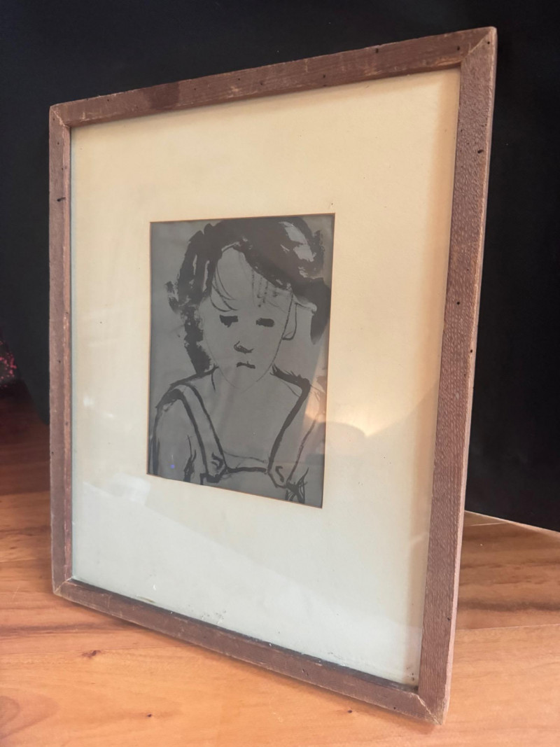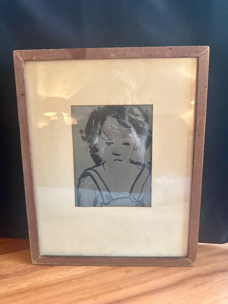 Vintage Framed Child Portrait Print – Black & White. 17” x 21”