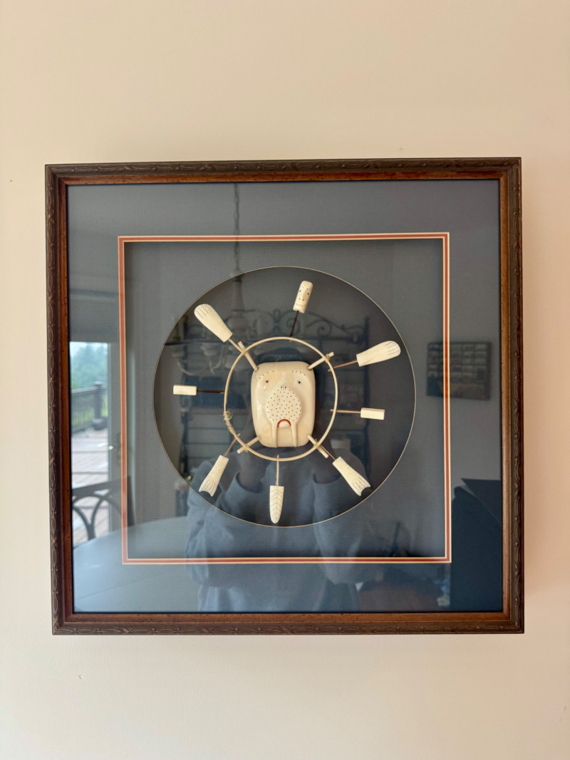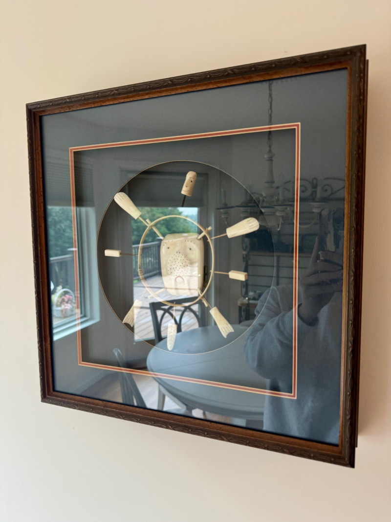 Framed Alaskan Native Bone Mask - Shadow Box Style Art. Professionally framed under glass in a 16 x 16 inch display.
