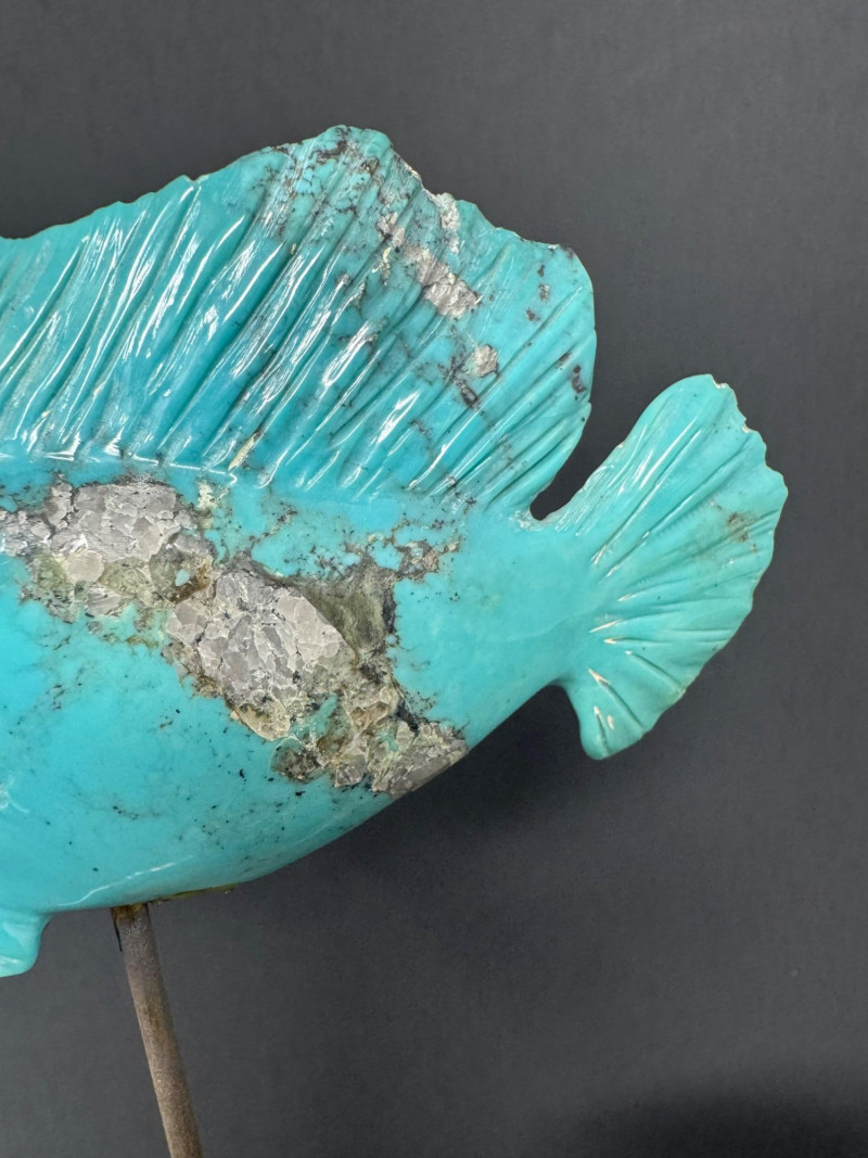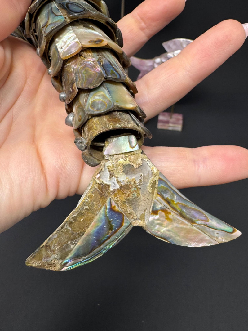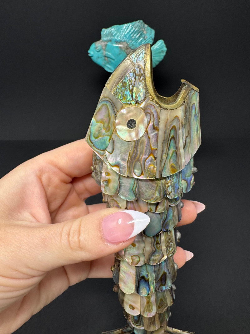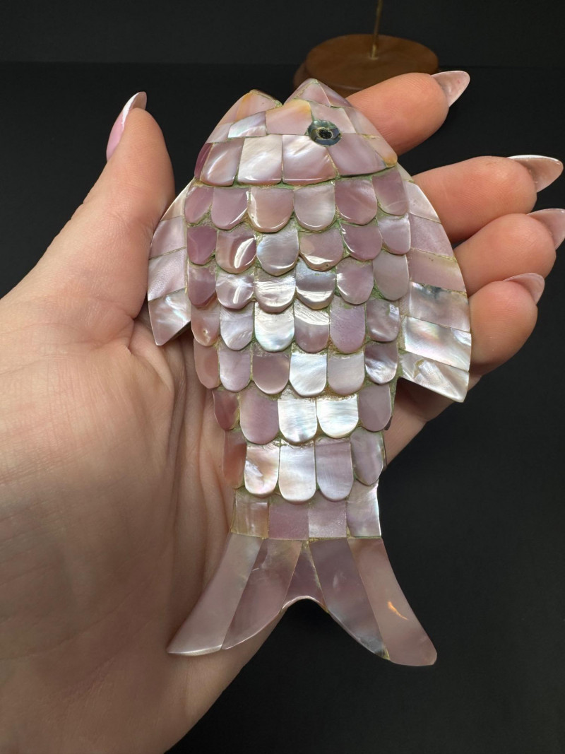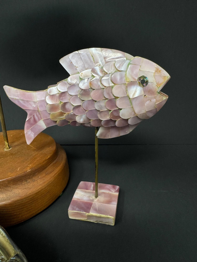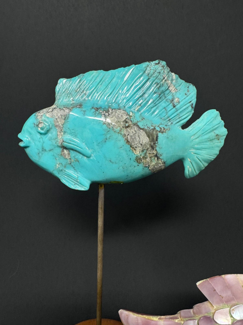 Stone & Shell Carved Fish Lot – Turquoise Tone, Pink, Abalone.