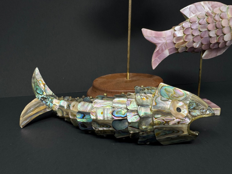 Lot # 3 - Stone & Shell Carved Fish Lot – Turquoise Tone, Pink, Abalone