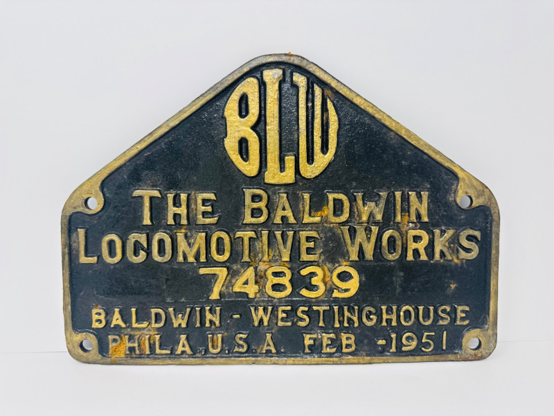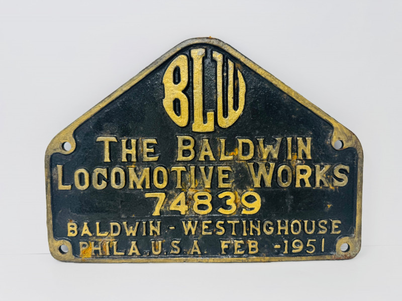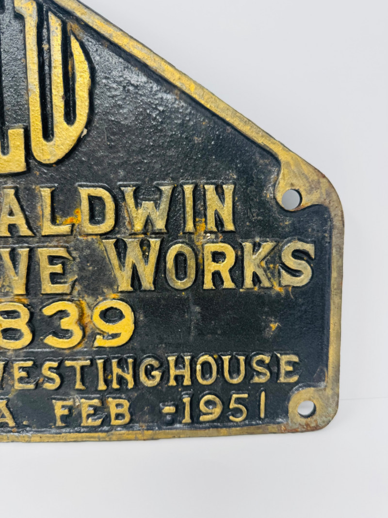 The Baldwin Locomotive Works, Heavy Cast Iron Builder Plate 1951.