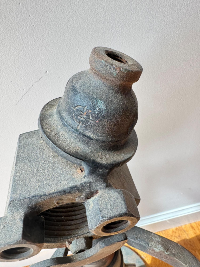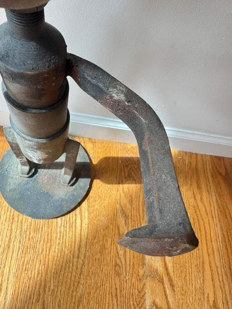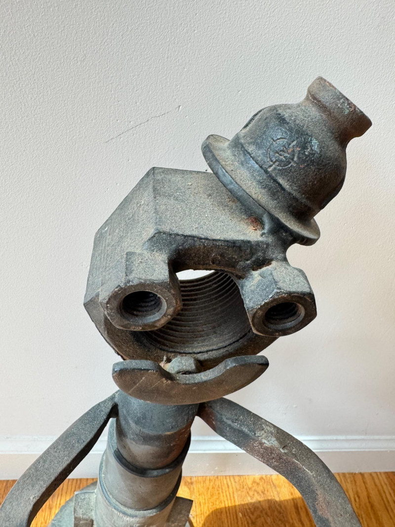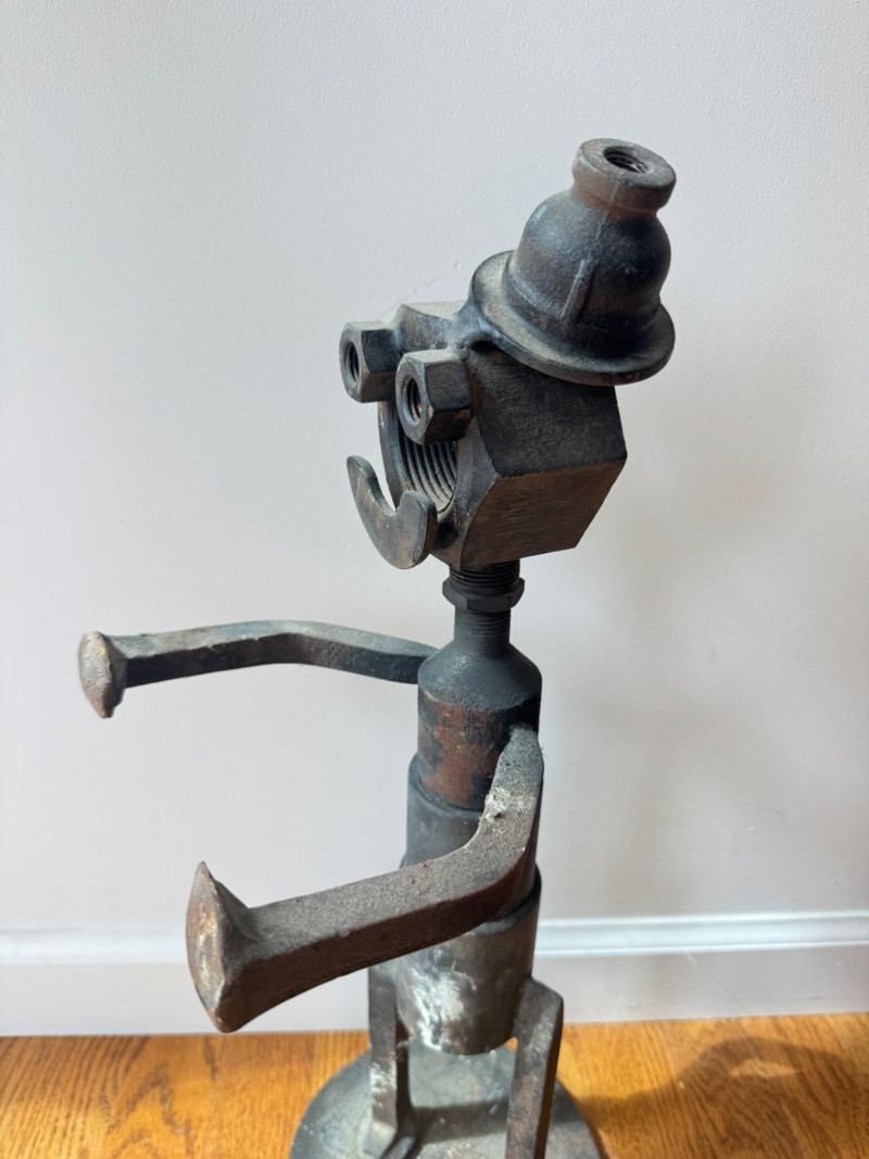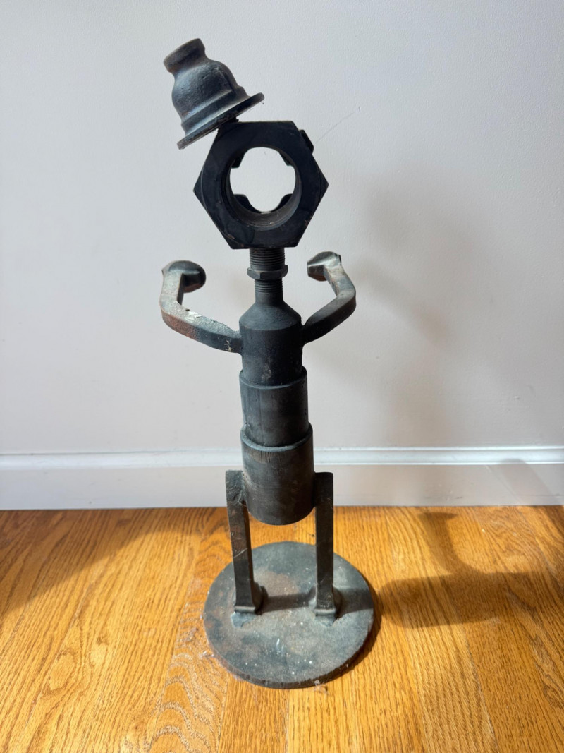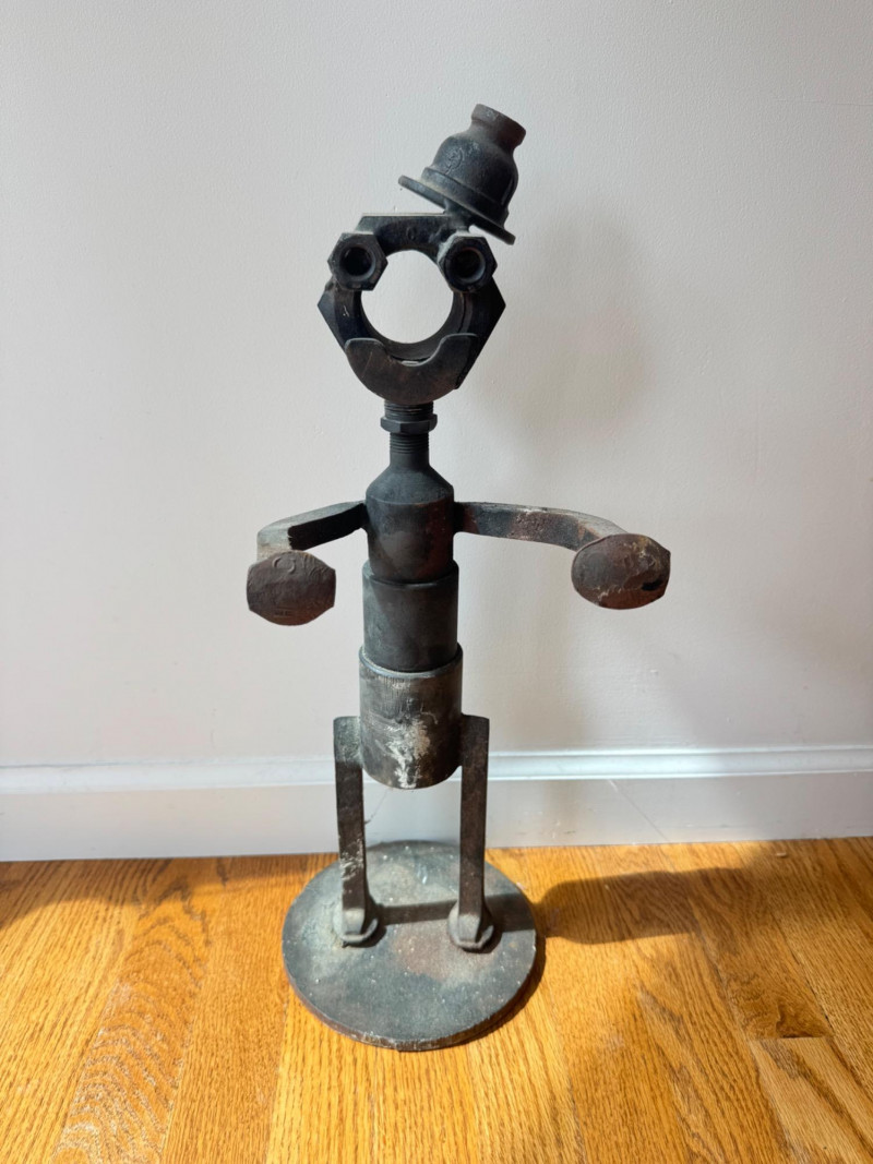 Welded Metal Man Sculpture w/ Hat Industrial Folk Art. 20.5” Tall