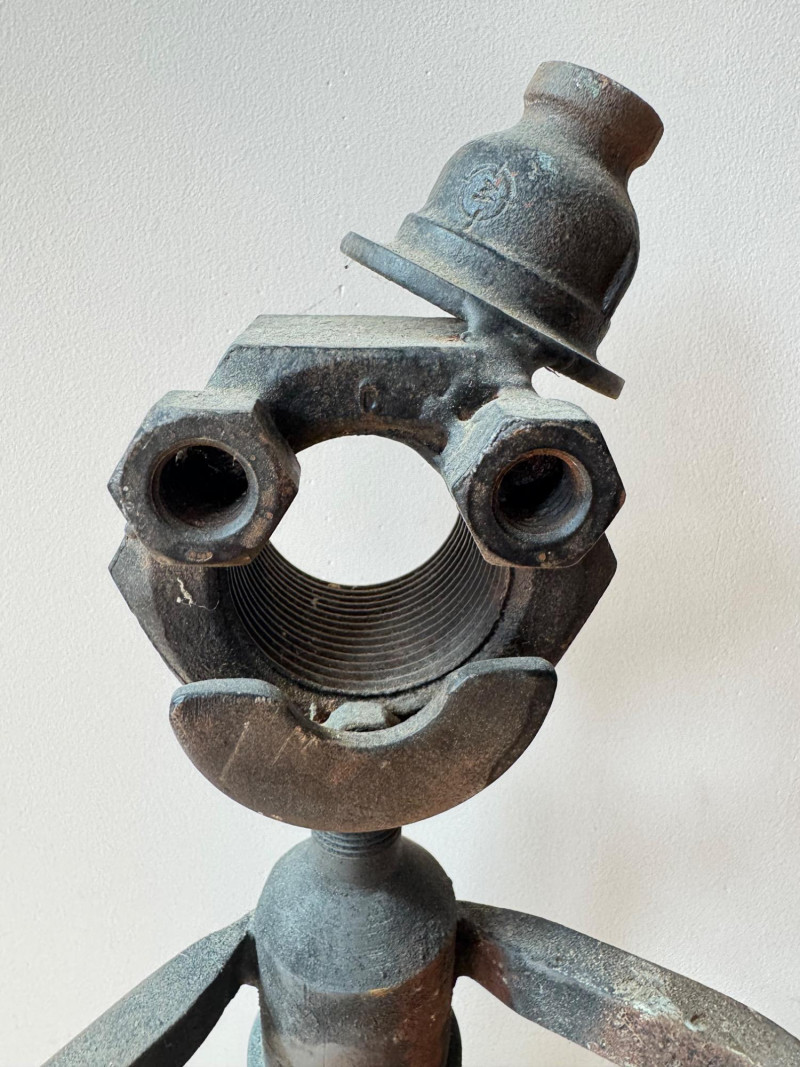 Lot # 15 - Welded Metal Man Sculpture w/ Hat Industrial Folk Art