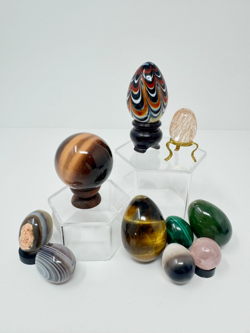 Lot # 17 - 10 Polished Stone Eggs & Spheres – Tiger Eye, Malachite, Agate