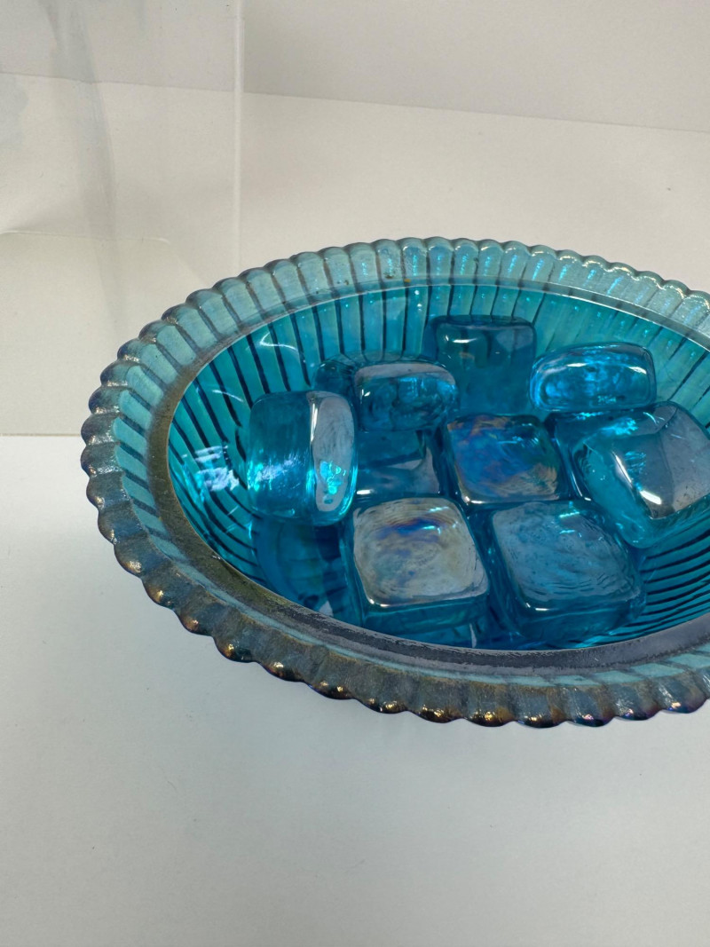 Lot # 18 - Vintage Blue Flat Iron Dish, Bird Candy Dish & Yellow Punch Bowl Set