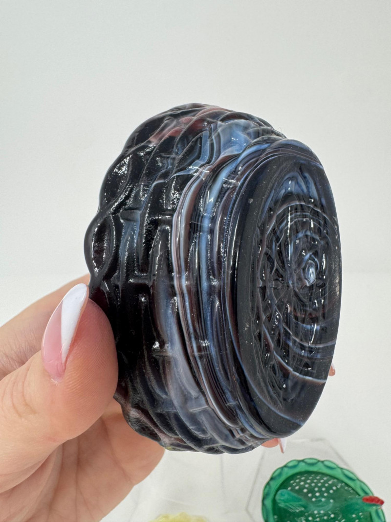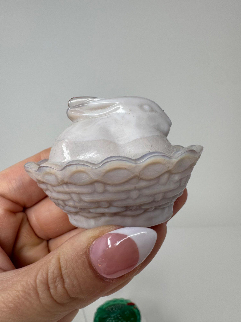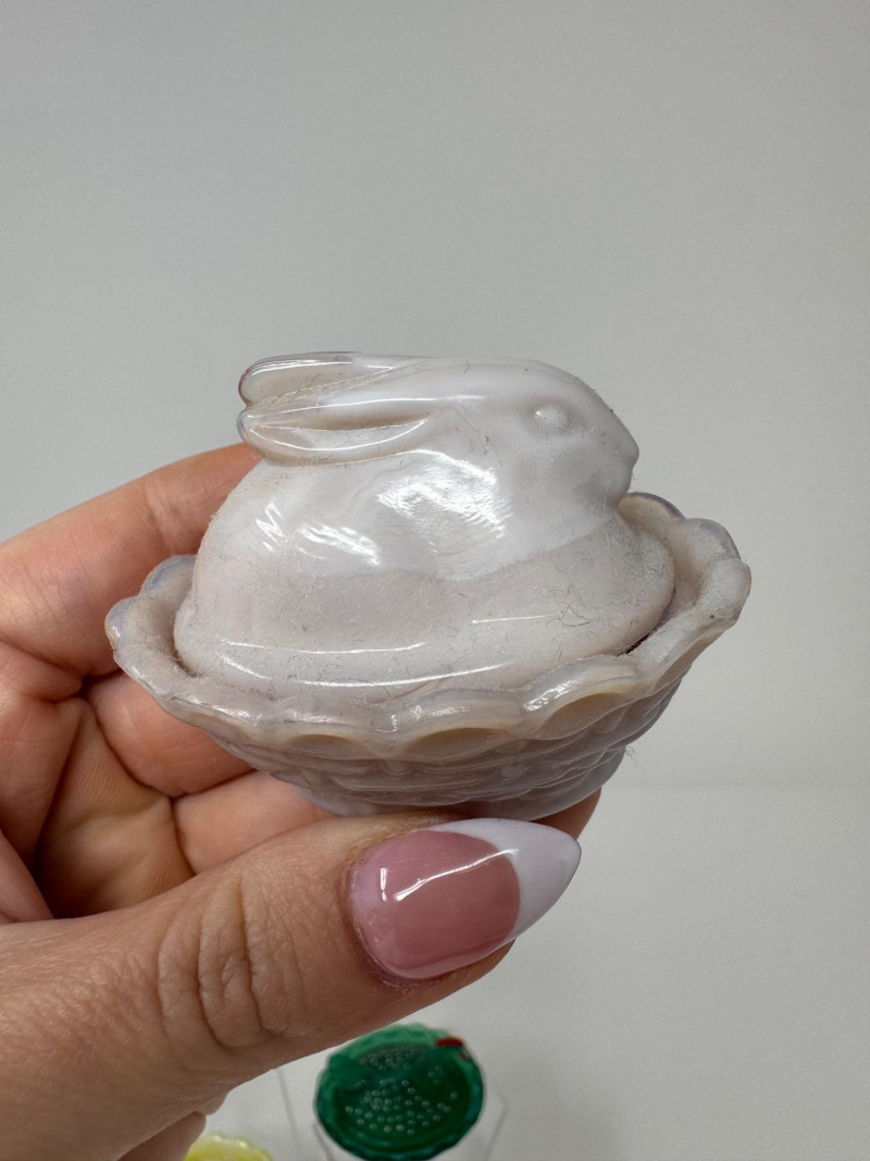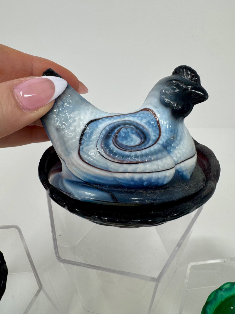 Boyd & Westmoreland Mini Glass Covered Dishes – Hen, Bunny, Doll + 2-3”