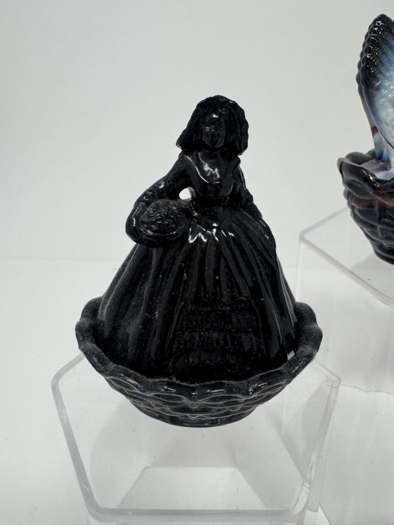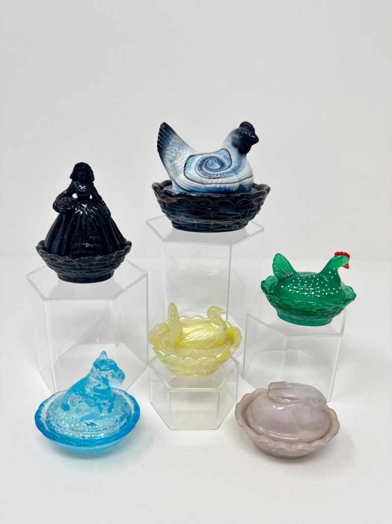 Lot # 20 - Boyd & Westmoreland Mini Glass Covered Dishes – Hen, Bunny, Doll +