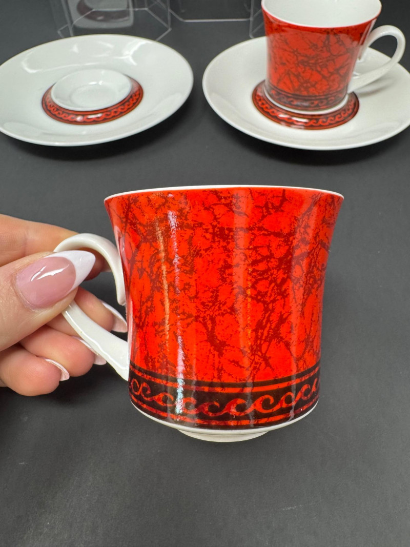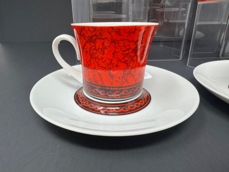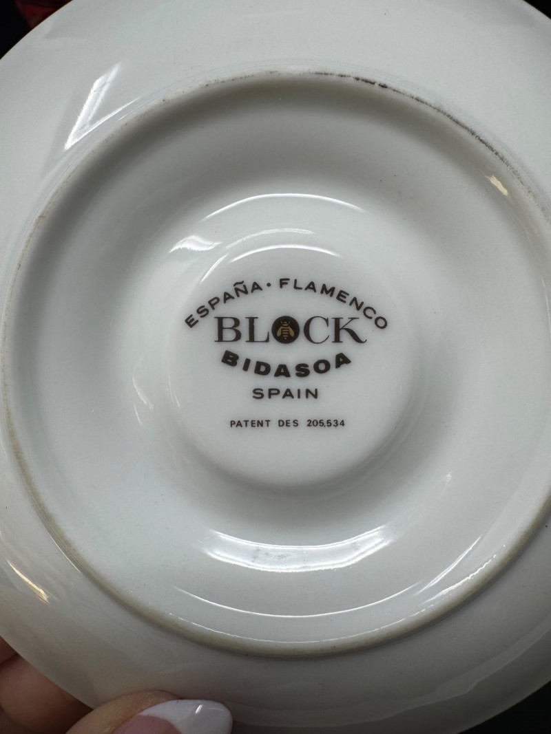 Vintage Block Bidasoa España Flamenco Red Porcelain Coffee Set - Spain.