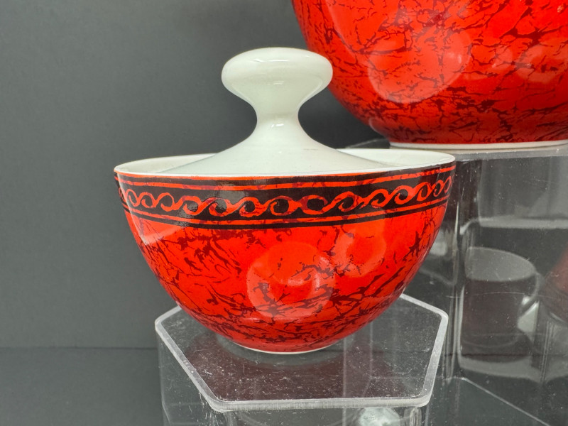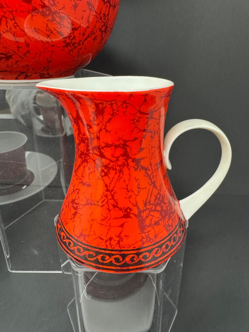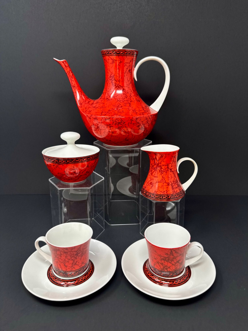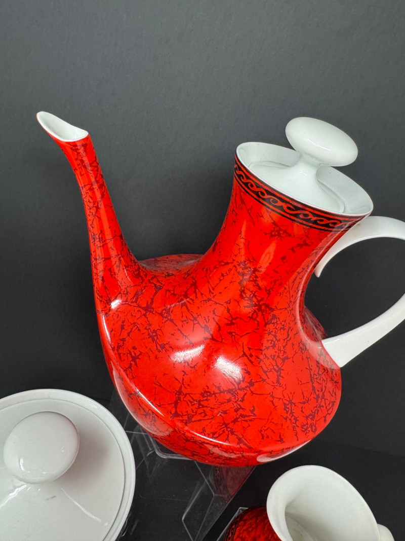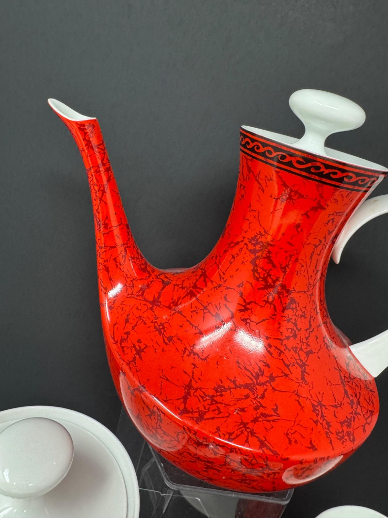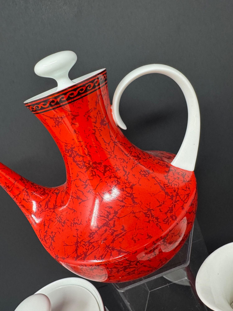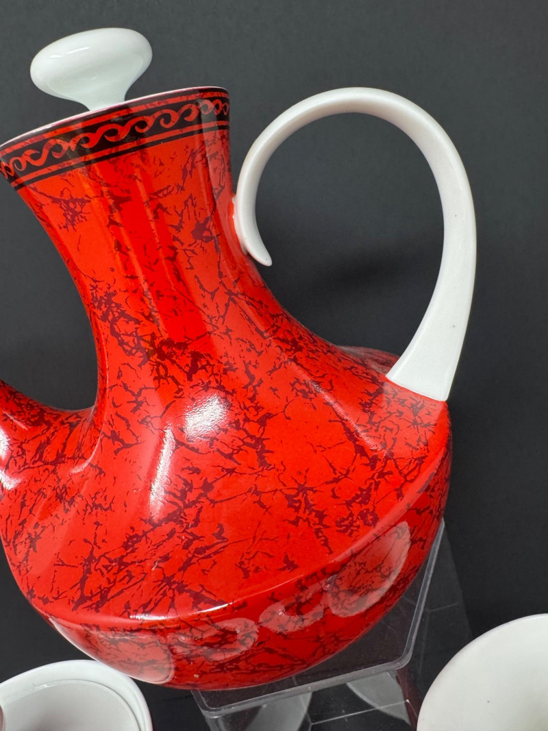 Lot # 24 - Vintage Block Bidasoa España Flamenco Red Porcelain Coffee Set - Spain