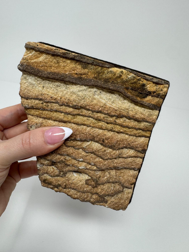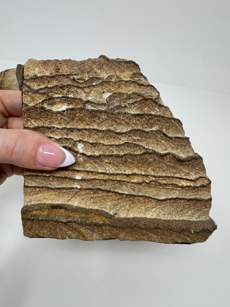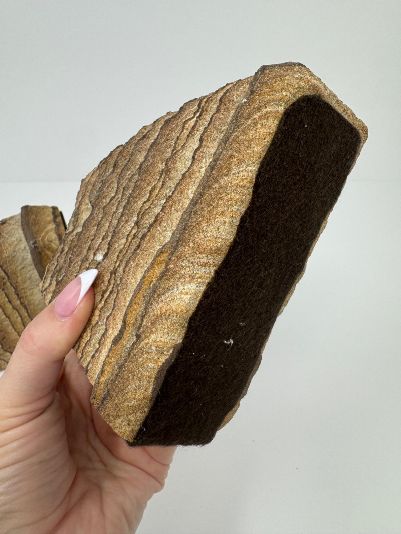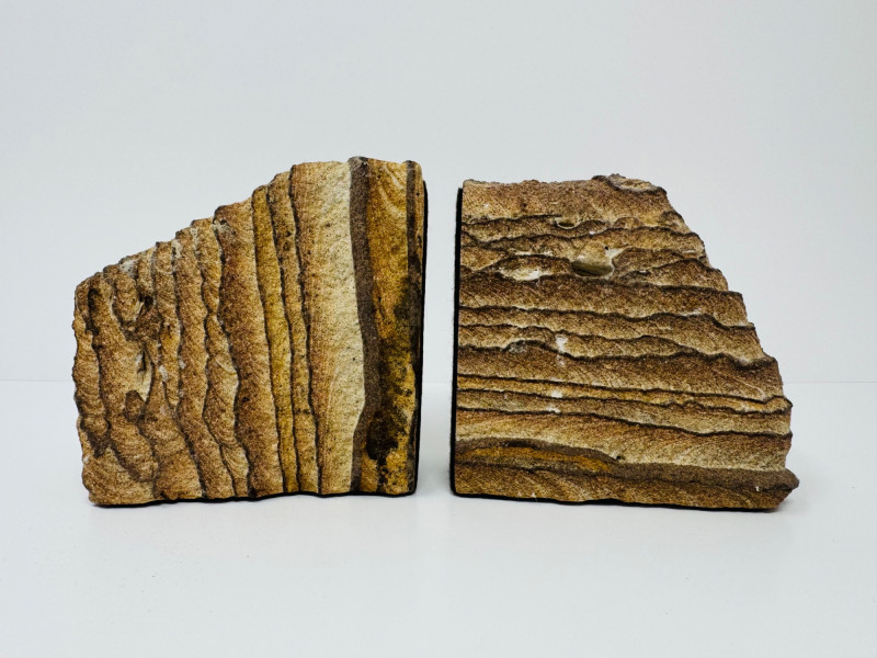 Pair of Natural Beige Sandstone Bookends w/ Wavy Layered Striations. 4.5” Tall x 4.5” Wide