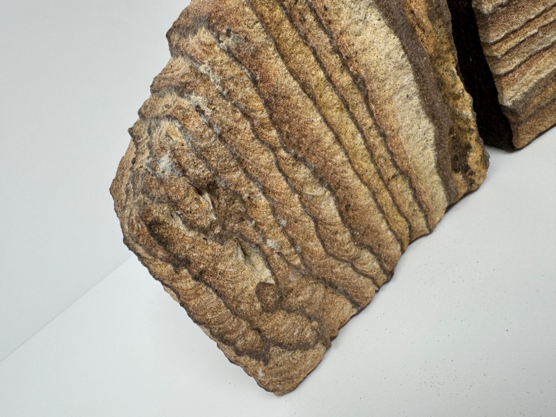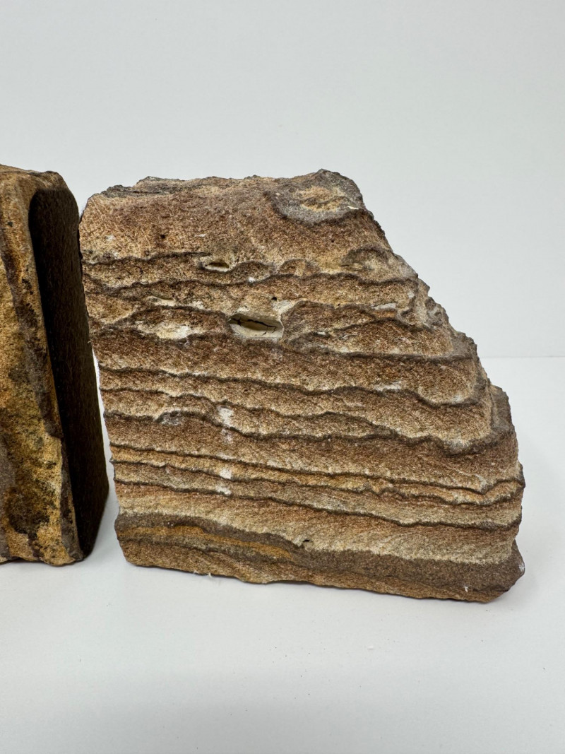 Lot # 30 - Pair of Natural Beige Sandstone Bookends w/ Wavy Layered Striations