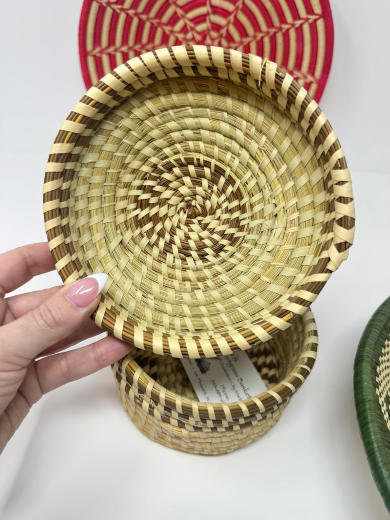 Lot # 31 - Set of 3 Handwoven Baskets – Sweetgrass, Uganda, & Fish Design